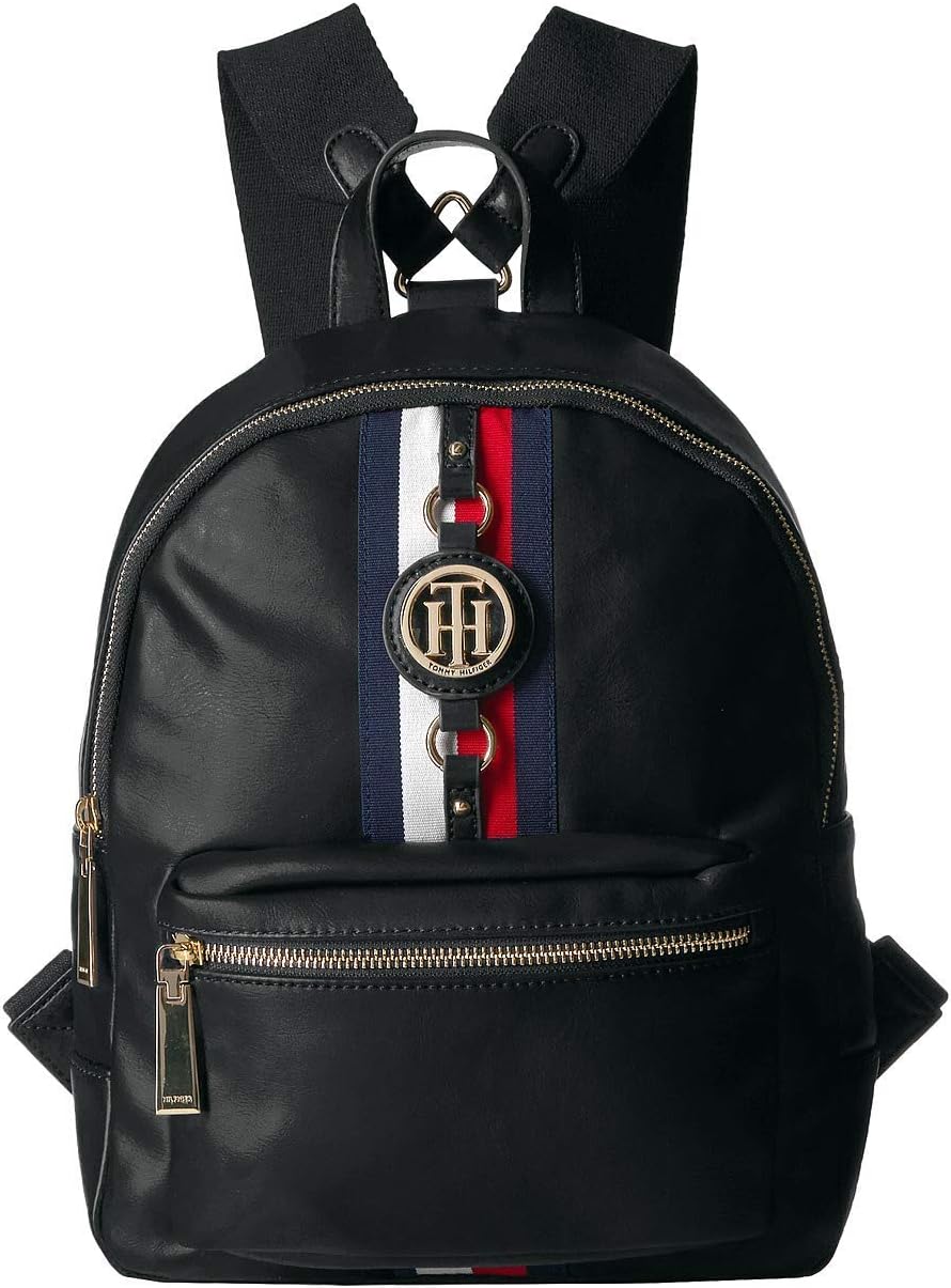 Мини-рюкзак для женщин с фирменной полосой Tommy Hilfiger и золотистой фурнитурой. Внешний передний карман с золотистой молнией. Застежка на молнию сверху с ручкой. Регулируемые лямки с золотистой фурнитурой. Внутренний слой из нейлона с подкладкой, карманом на молнии на стенке и накладным карманом. Этот рюкзак Tommy Hilfiger - универсальная и незаменимая вещь, идеальный мини-рюкзак для работы и отдыха. Наш стильный женский рюкзак поможет вам организовать вещи в дороге. Длина 9-3/4; высота 12-1/2; ширина 5; высота 1-3/4.