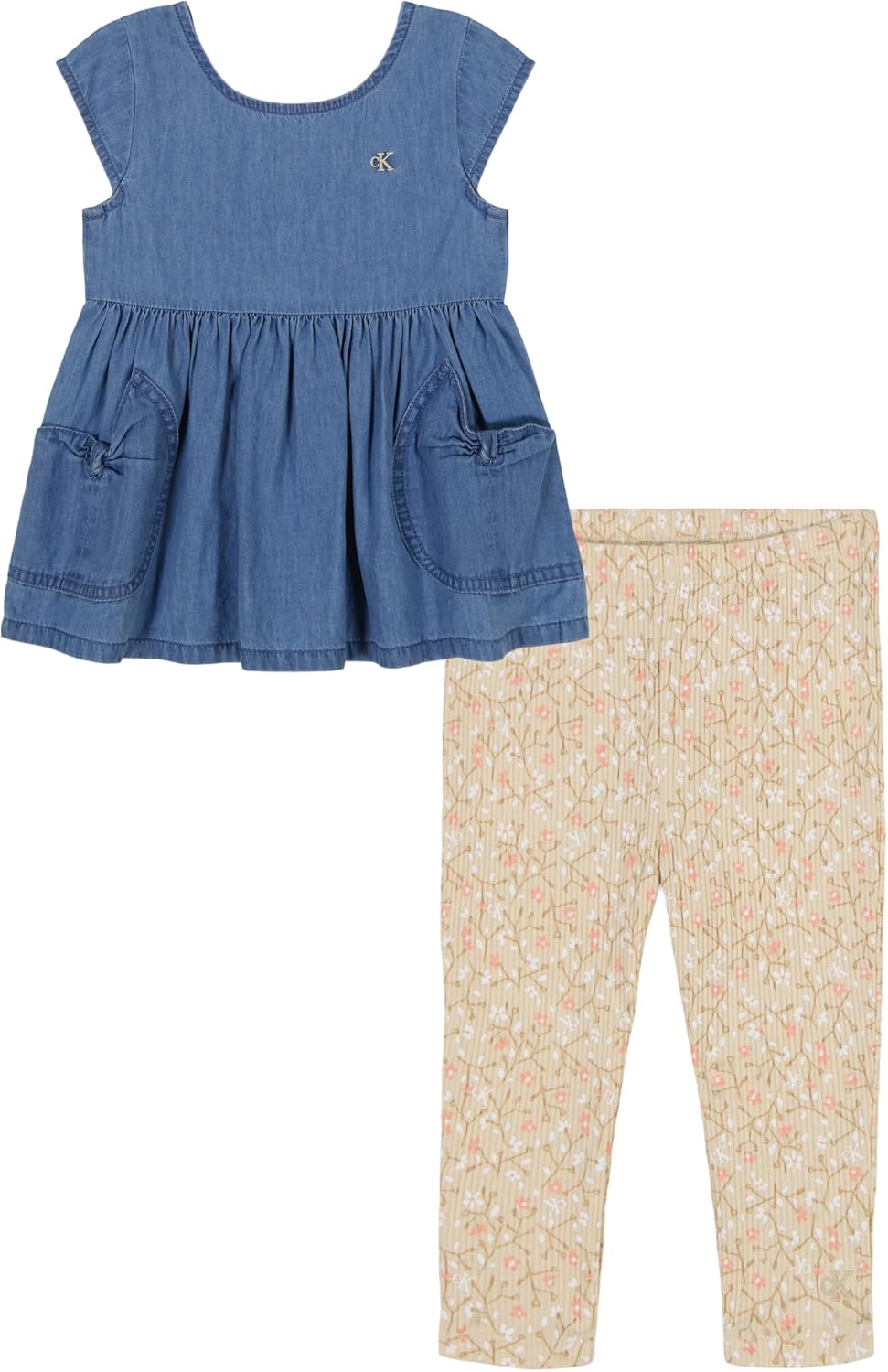 Комплект капри Calvin Klein для девочек из двух предметов, Medium Wash/Crème Brulee