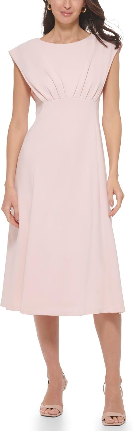 Стиль и дизайн: Выглядите потрясающе в платье-миди Calvin Klein Scuba Crepe Caplet A-Line. Лиф-каплет со сборками и плиссировкой, вырез «лодочка» и рукава-крылышки создают стильный образ.