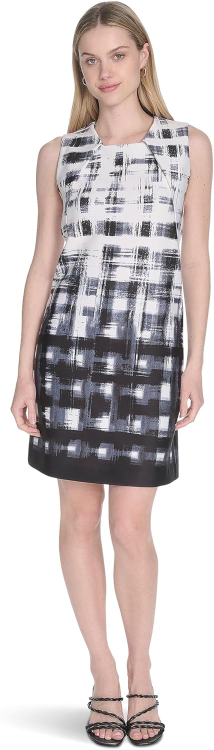 ЭЛЕГАНТНЫЙ СТИЛЬ: Платье-футляр без рукавов с принтом Calvin Klein Scuba идеально подходит для официальных мероприятий и коктейльных вечеринок, предлагая вечную элегантность в современной интерпретации.