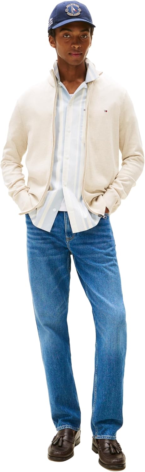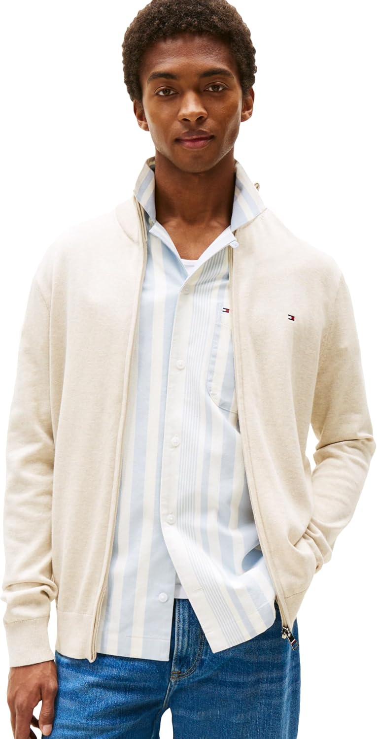 ВАЖНЫЙ ВЯЗАНЫЙ СВИТЕР: свитер Tommy Hilfiger на молнии из 100% Хлопка, мягкий на ощупь, с ребристым воротником, подолом и манжетами. Эта легкая мужская куртка-свитер обеспечит вам комфорт и тепло благодаря воздухопроницаемости.