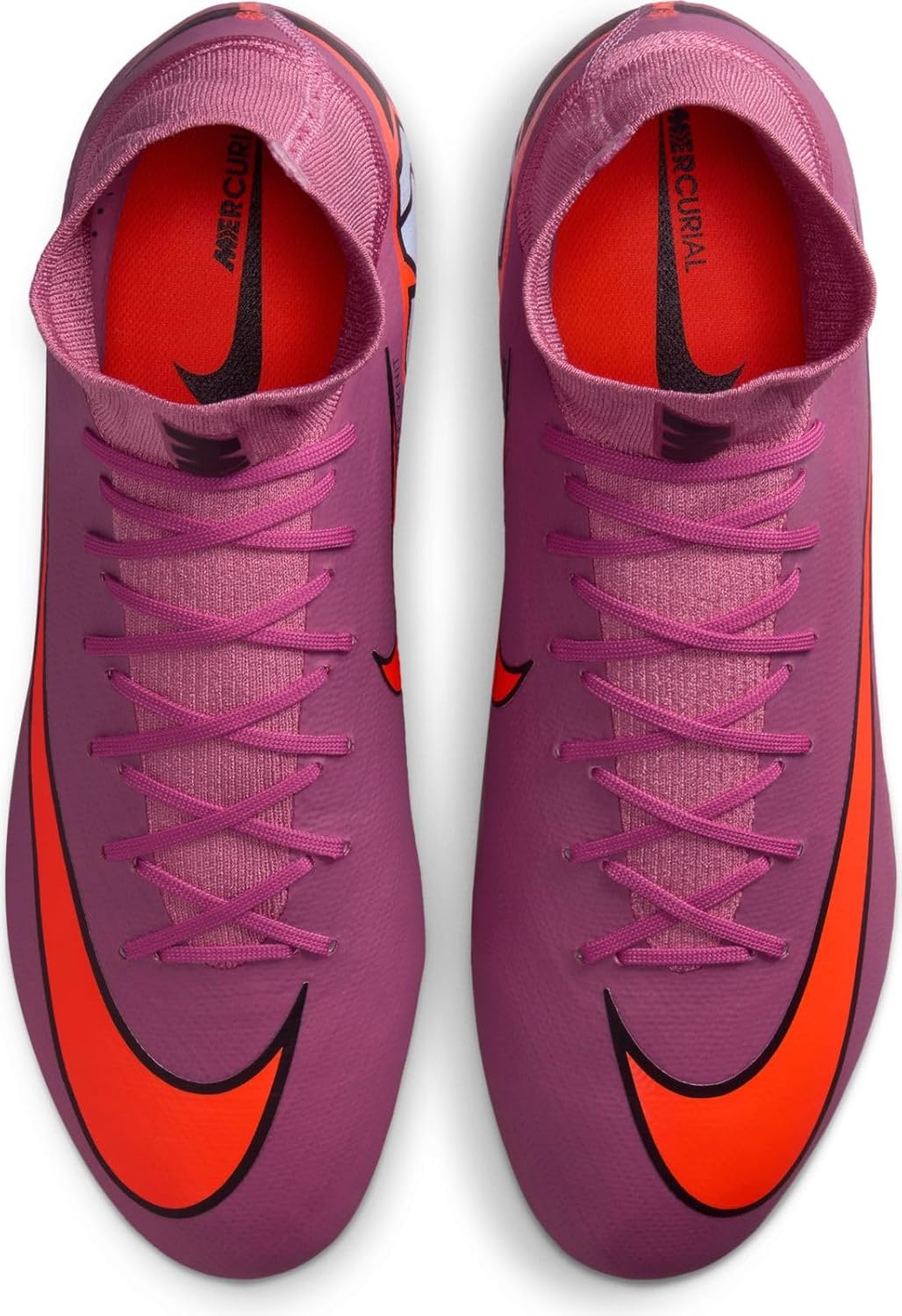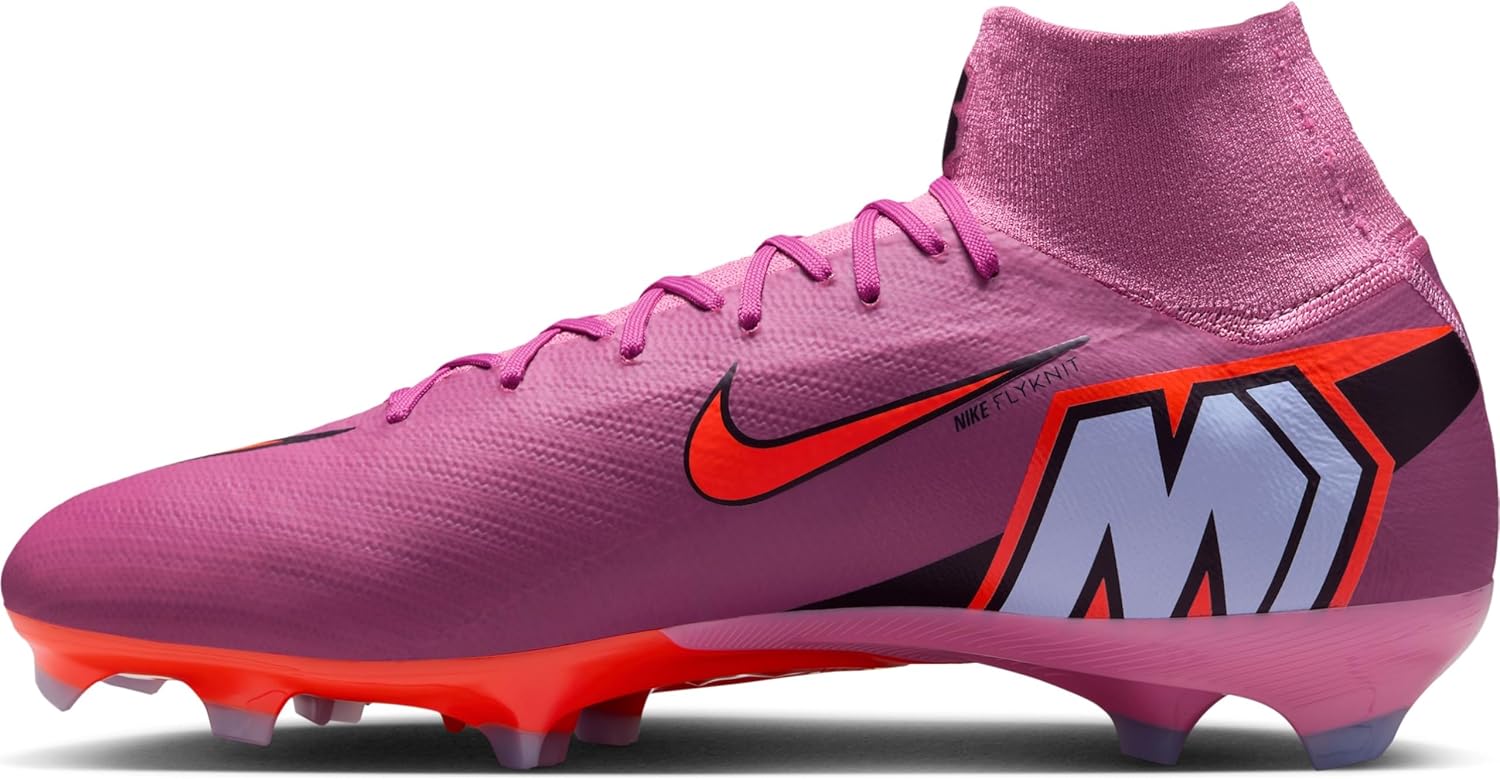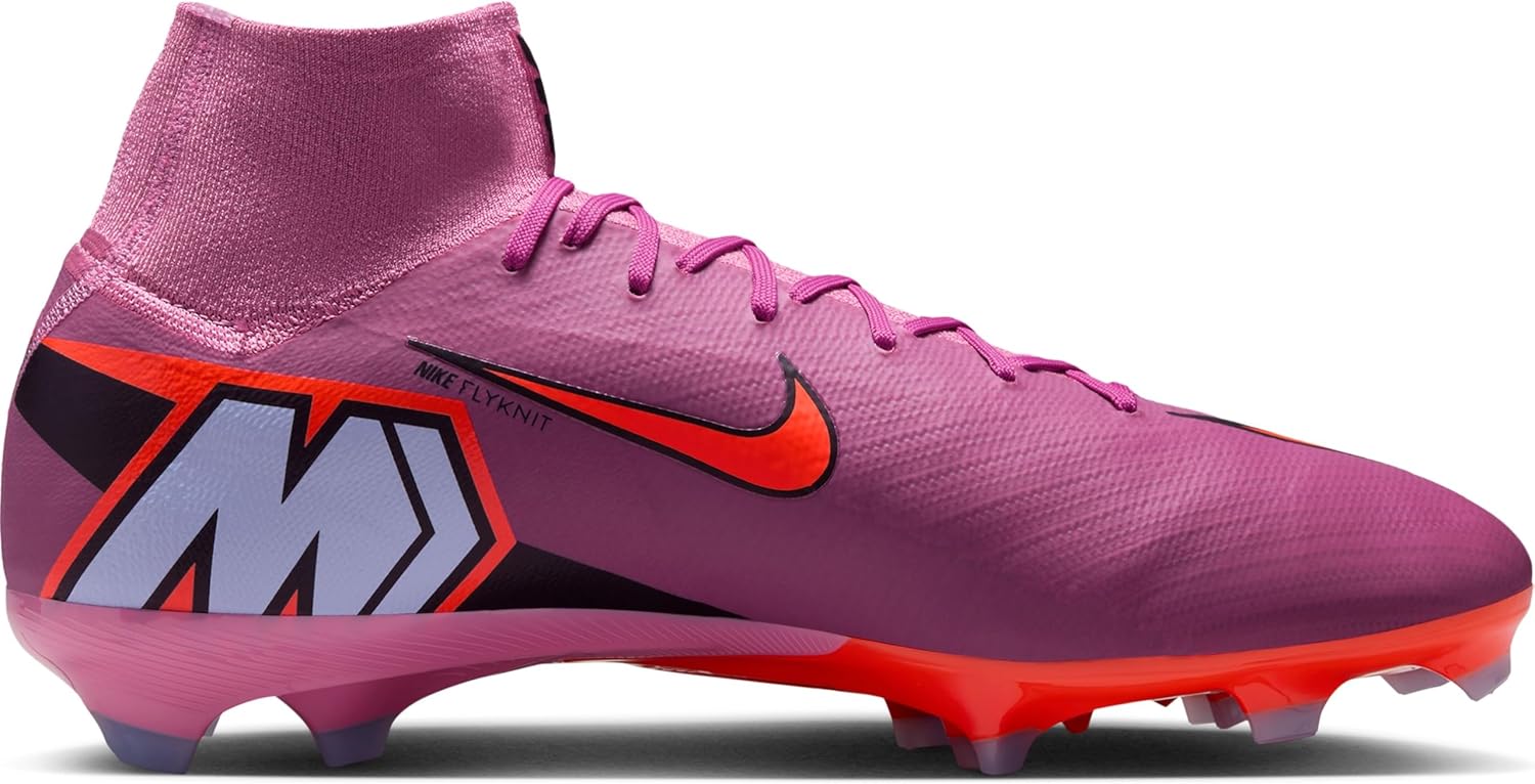 Скорость - ваша суперсила? Наши профессиональные футбольные бутсы подойдут всем, кто определяет темп игры до последней минуты. Именно поэтому мы оснастили Superfly 10 улучшенным элементом Air Zoom. Он дает вам ощущение движения, необходимое для прорыва в зону ворот. Поднимите свои навыки на новый уровень с некоторыми из величайших инноваций Nike, такими как наш верх Flyknit, который делает кроссовки еще легче, чтобы вы могли играть быстрее. Цепкое чувство мяча: цепкая отделка обеспечивает точные удары и оптимальный контроль мяча при быстром ведении. БЫСТРОЕ СЦЕПЛЕНИЕ Волнообразный рисунок протектора состоит из ряда каскадных шипов, которые увеличивают площадь поверхности элемента Air Zoom, обеспечивая надежное сцепление. Самый большой шип такой же высоты, как наши проверенные шипы среднего размера, поэтому сцепление не ухудшается. Мы объединили волнообразный рисунок протектора с обновленными шевронными и лезвийными шипами для быстрой смены направления. УДОБНАЯ ПОСАДКА Эти Mercurial - первые с полноразмерным верхом Flyknit. Они оптимизированы для игровых условий и обладают типичными характеристиками Mercurial. Эти кроссовки созданы для скорости. Невероятно легкий, но прочный материал Flyknit на боковых панелях обеспечивает сцепление и более точное чувство мяча. Эластичный бортик Flynit обеспечивает надежную посадку. - Идеально подходят для использования на мокрых полях с короткой травой. - Мягкая стелька.