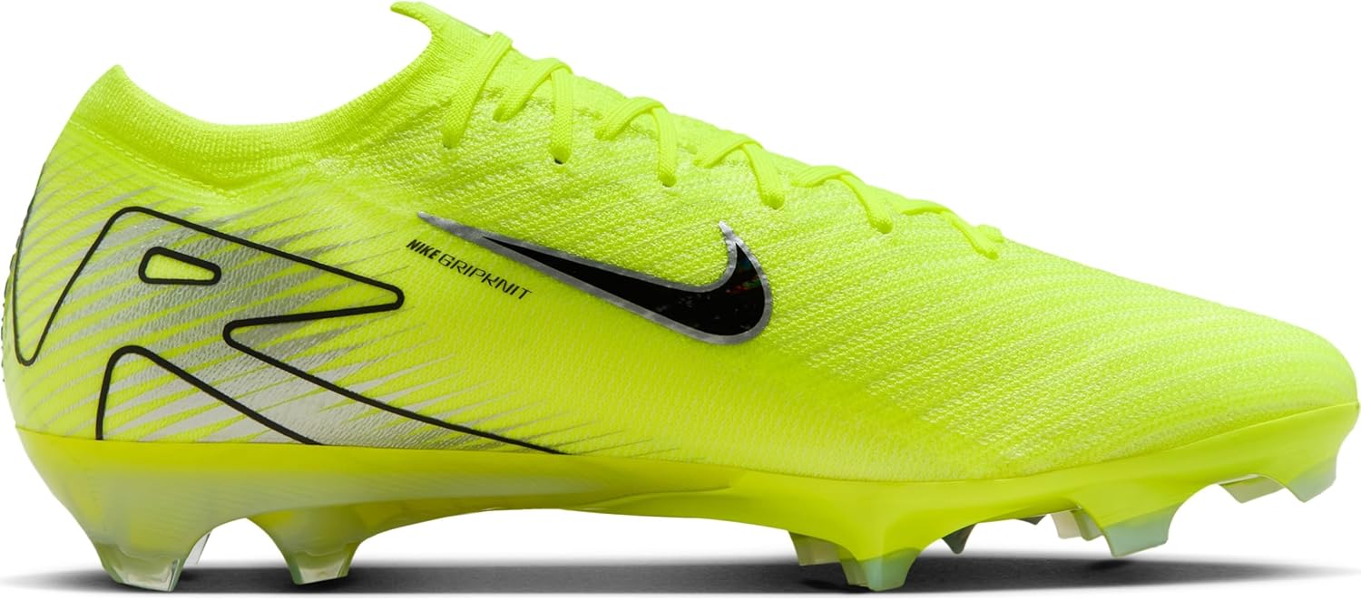 Футбольные бутсы Nike Mercurial Vapor 16 Elite FG с низким верхом Любите скорость? Тогда у вас есть что-то общее с крупнейшими звездами футбола. Поэтому мы разработали эти бутсы Elite с улучшенным элементом Air Zoom длиной 3/4. Они дают вам и самым быстрым видам спорта ощущение движения, необходимое для прорыва через ворота. Результатом являются наши самые отзывчивые Mercurial из когда-либо существовавших, потому что вы ждете от себя и своих бутс большего. Превосходное чувство мяча Nike Gripknit - это цепкий материал, который обеспечивает лучшее чувство мяча. Обувь имеет большую площадь поверхности, чтобы вы могли лучше контролировать мяч при ведении на высокой скорости или завершать движение ударом по воротам. Она адаптируется к форме вашей стопы и обеспечивает одинаковое сцепление как во влажных, так и в сухих условиях. Посадка похожа на посадку легкоатлетических кроссовок. Микроформованная структура с Gripknit облегает вашу стопу для еще лучшего контакта с мячом. Быстрое сцепление. Рисунок протектора волнообразной формы состоит из ряда каскадных шипов, которые увеличивают поверхность элемента Air Zoom, обеспечивая надежное сцепление. Самый большой шип такой же высоты, как наши проверенные шипы среднего размера, поэтому сцепление не ухудшается. Мы объединили волнообразный рисунок протектора с обновленными шевронными и лезвийными шипами для облегчения быстрой смены направления. Надежная фиксация, удобная посадка. Верх Flyknit во всю длину разработан для быстрого темпа. Atomknit, невероятно легкий и прочный вариант Flyknit, по бокам уменьшает вес и обеспечивает поддержку. Gripknit, Atomknit и Flyknit вместе образуют самый тонкий верх Mercurial на сегодняшний день, что позволяет вам быть ближе к мячу и сокращает время, необходимое для ношения обуви. Идеально подходит для использования на полях с слегка влажной, короткой травой. Амортизирующая стелька