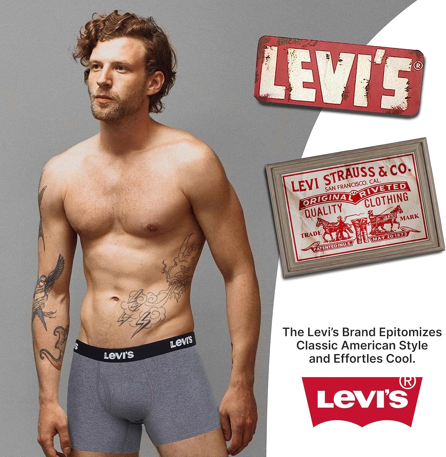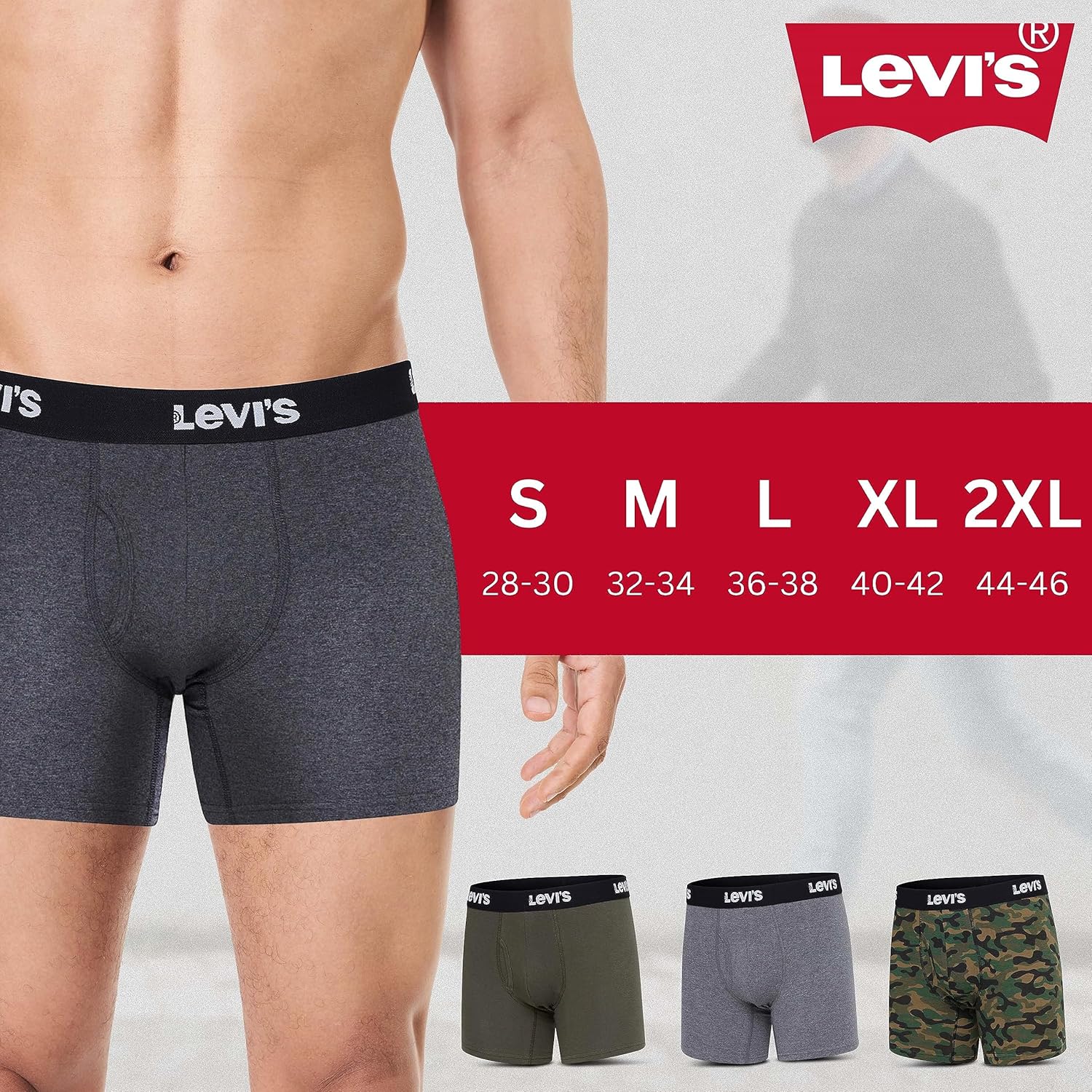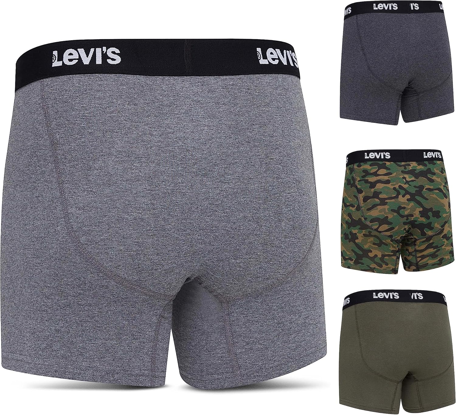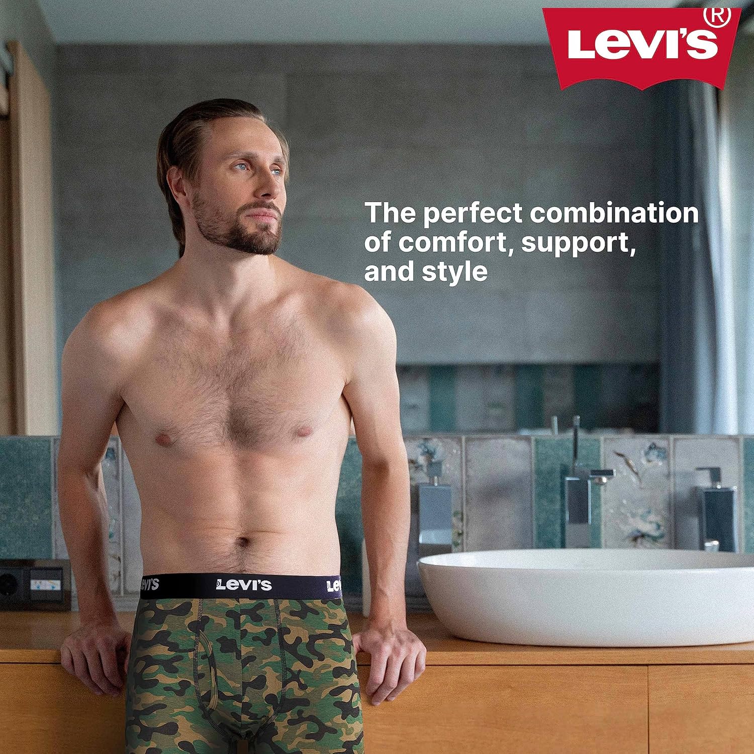 Мужские трусы-боксеры Levi's, дышащие, эластичные, 4 пары, Charcoal, Heather, Olive, Camo 3 054₽