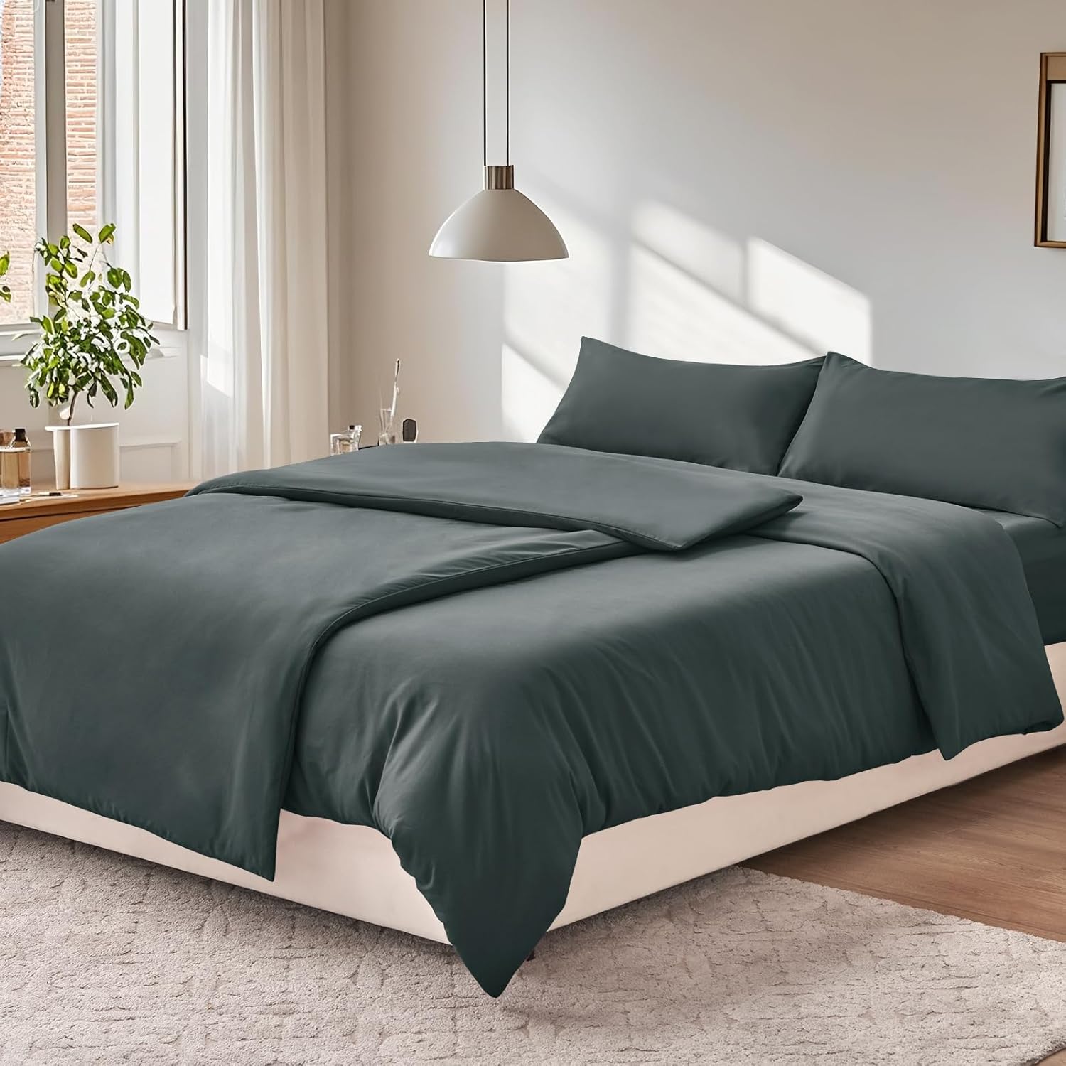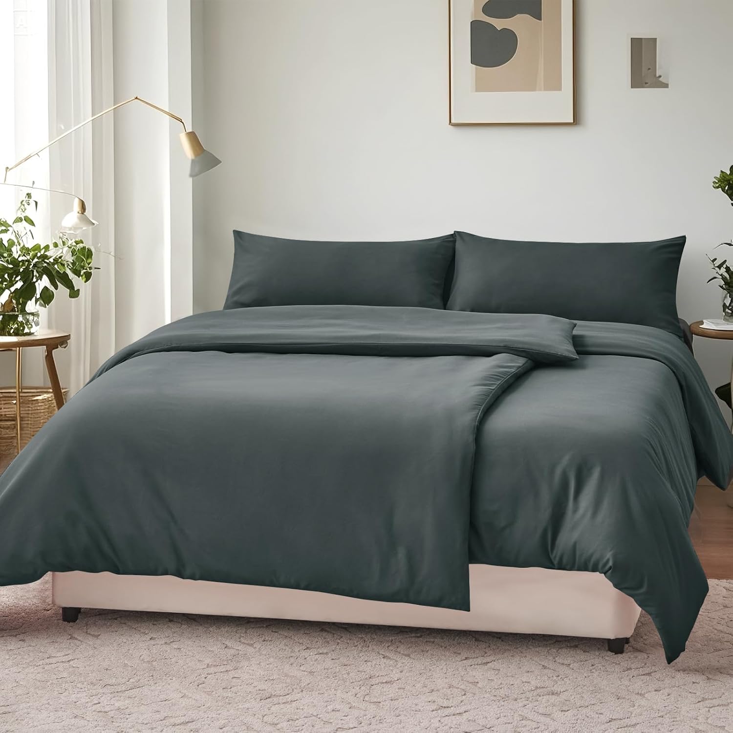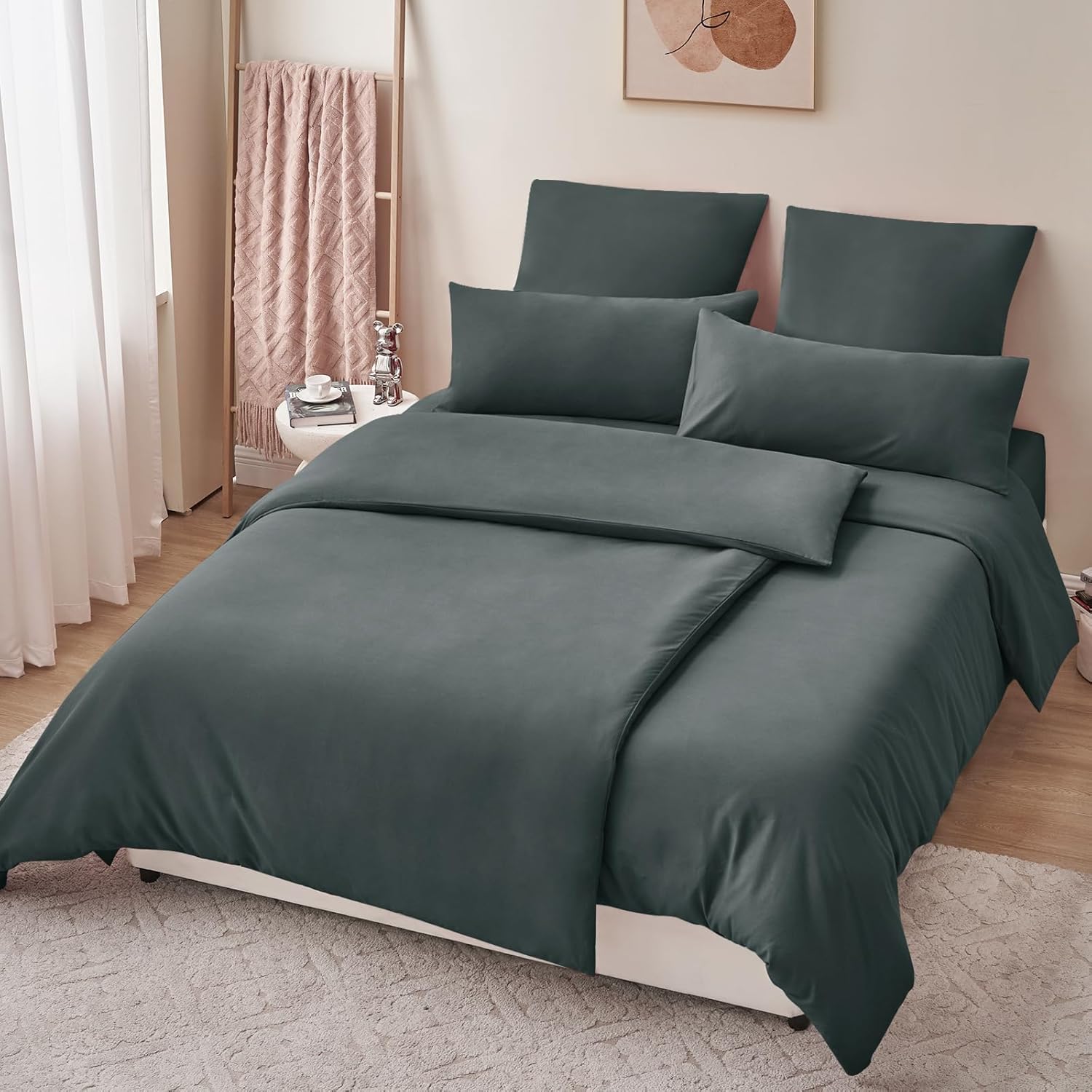 Комплект постельного белья из 4 предметов размером 135 x 200 см (в комплекте: 2 пододеяльника (135 x 200 см) + 2 наволочки (40 x 80 см)) с гладкой поверхностью и приятной текстурой изготовлен из микрофибры. Он очень приятен для кожи, так как он особенно мягкий и гипоаллергенный, что позволит вам наслаждаться спокойным ночным сном.