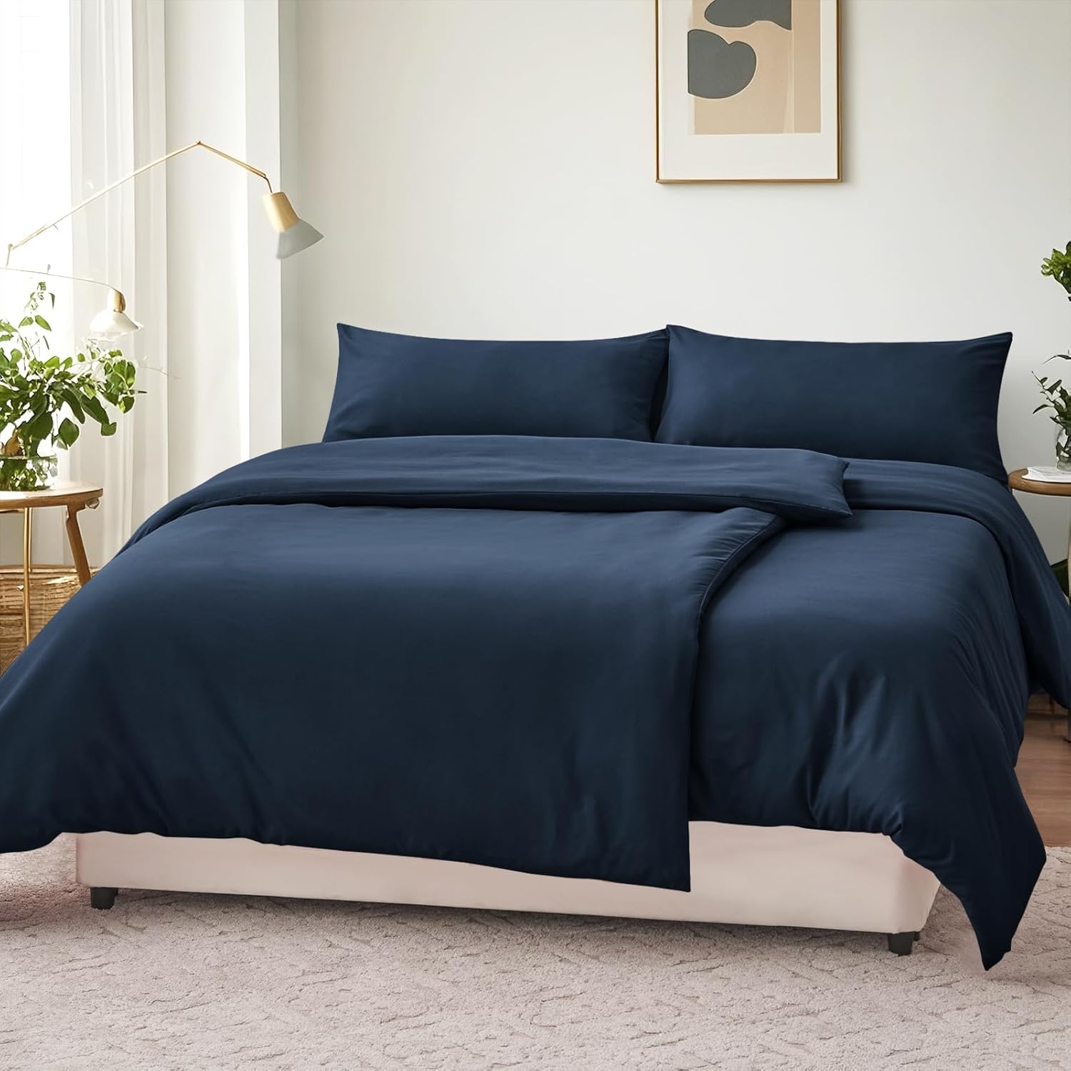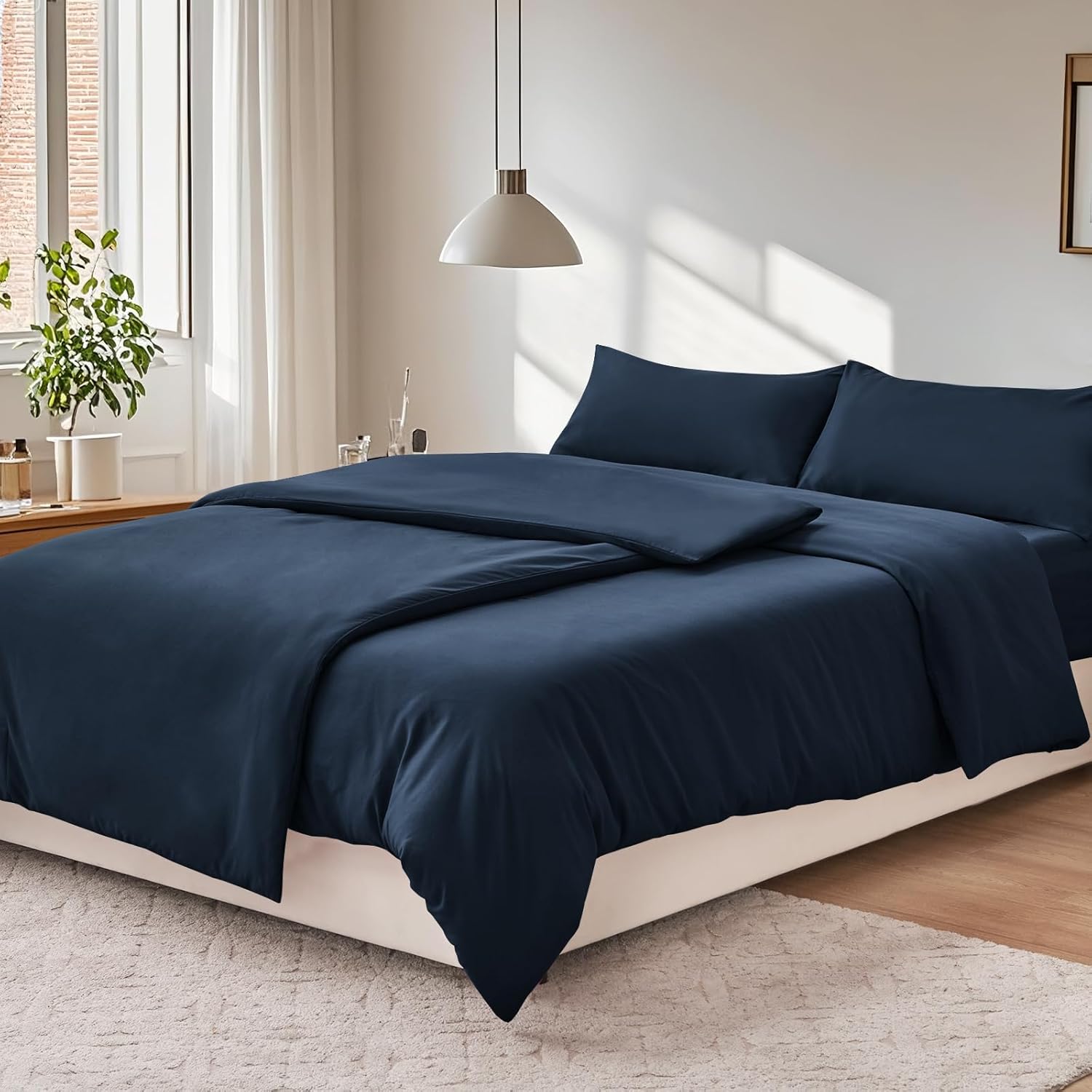 Комплект постельного белья из 4 предметов размером 135 x 200 см (в комплекте: 2 пододеяльника (135 x 200 см) + 2 наволочки (40 x 80 см)) с гладкой поверхностью и приятной текстурой изготовлен из микрофибры. Он очень приятен для кожи, так как он особенно мягкий и гипоаллергенный, что позволит вам наслаждаться спокойным ночным сном.