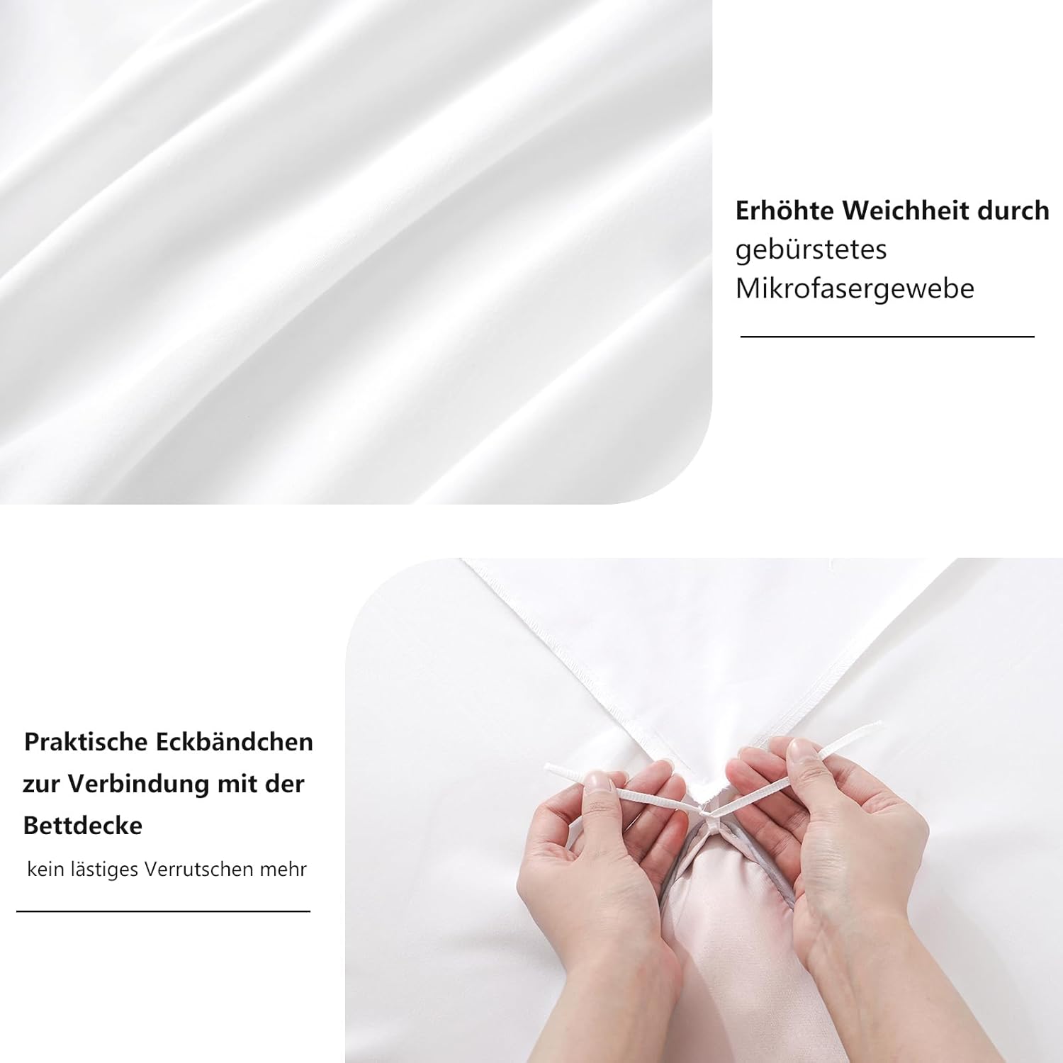 Комплект постельного белья из 4 предметов размером 135 x 200 см (в комплекте: 2 пододеяльника (135 x 200 см) + 2 наволочки (40 x 80 см)) с гладкой поверхностью и приятной текстурой изготовлен из микрофибры. Он очень приятен для кожи, так как он особенно мягкий и гипоаллергенный, что позволит вам наслаждаться спокойным ночным сном.