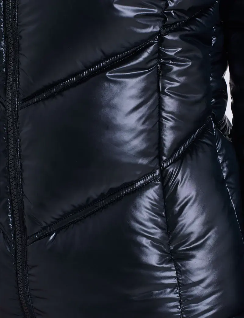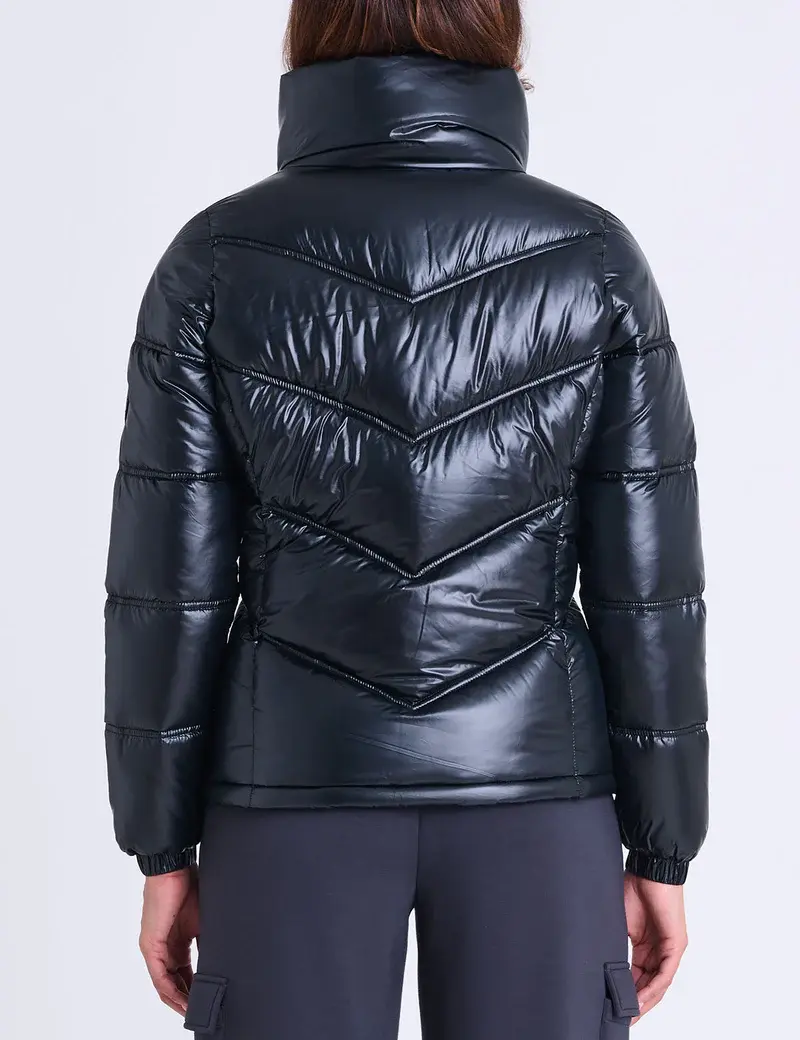 Блестящая стеганая куртка с шевронным узором — элегантное тепло в спортивно-роскошном стиле