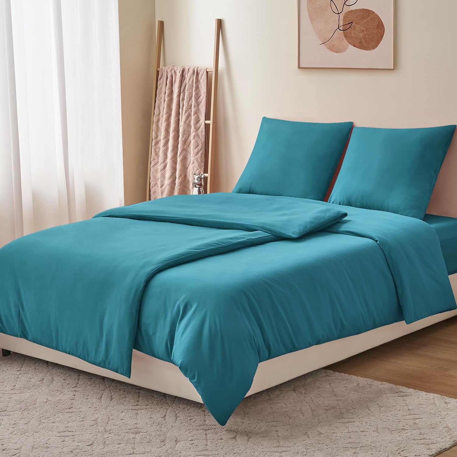 Комплект постельного белья RUIKASI, 135 x 200 см, 4 предмета: 2 пододеяльника и 2 наволочки из микрофибры, на молнии, мягкий и не требующий глажки.