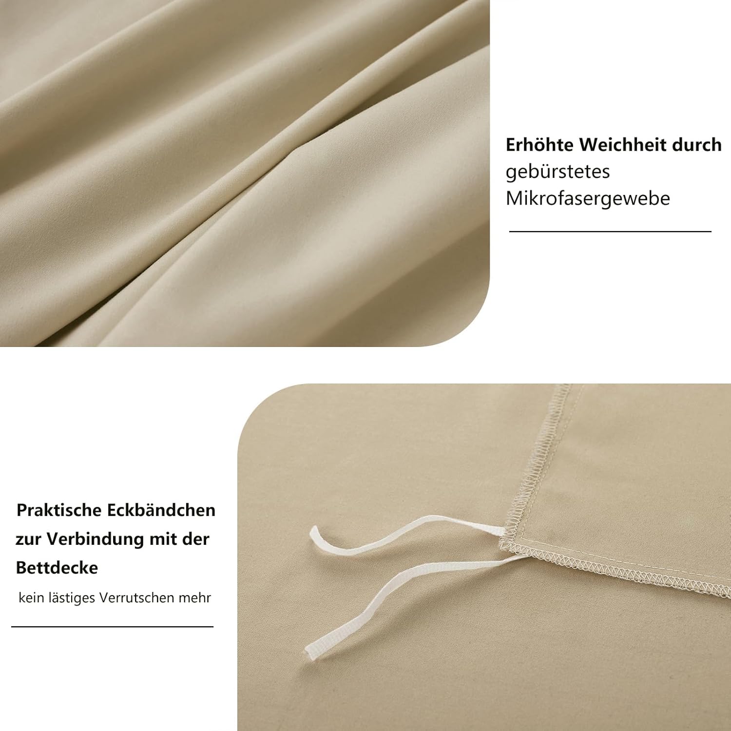 Комплект постельного белья из 4 предметов размером 135 x 200 см (в комплекте: 2 пододеяльника (135 x 200 см) + 2 наволочки (80 x 80 см)) с гладкой поверхностью и приятной текстурой изготовлен из микрофибры. Он очень приятен для кожи, так как он особенно мягкий и гипоаллергенный, что позволит вам наслаждаться спокойным ночным сном.