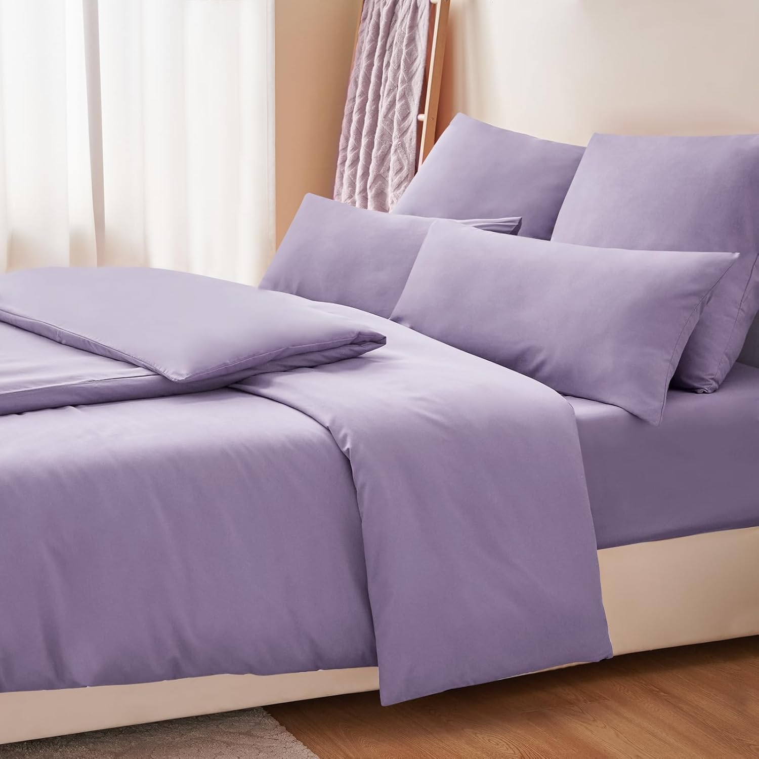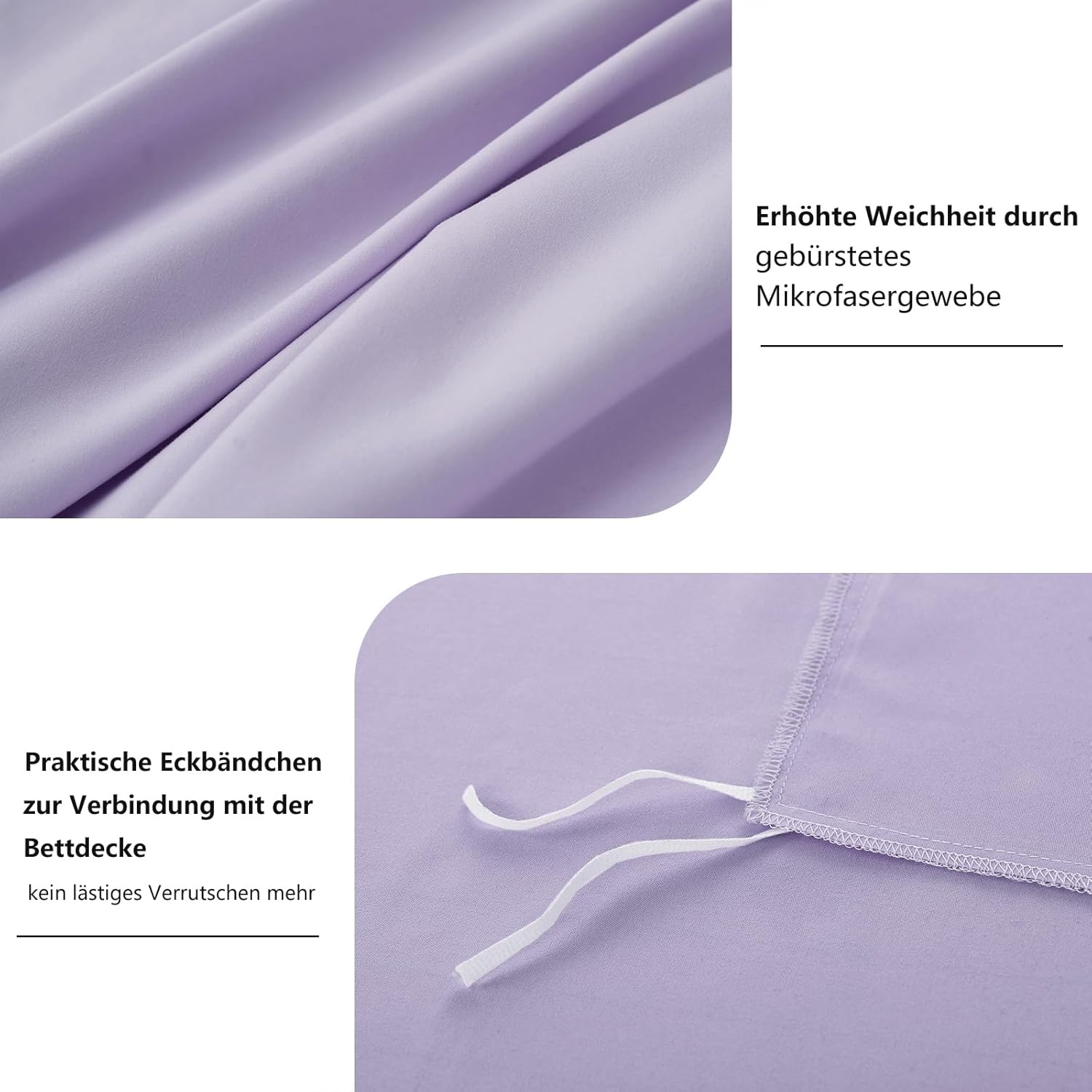 Комплект постельного белья из 4 предметов размером 135 x 200 см (в комплекте: 2 пододеяльника (135 x 200 см) + 2 наволочки (80 x 80 см)) с гладкой поверхностью и приятной текстурой изготовлен из микрофибры. Он очень приятен для кожи, так как он особенно мягкий и гипоаллергенный, что позволит вам наслаждаться спокойным ночным сном.