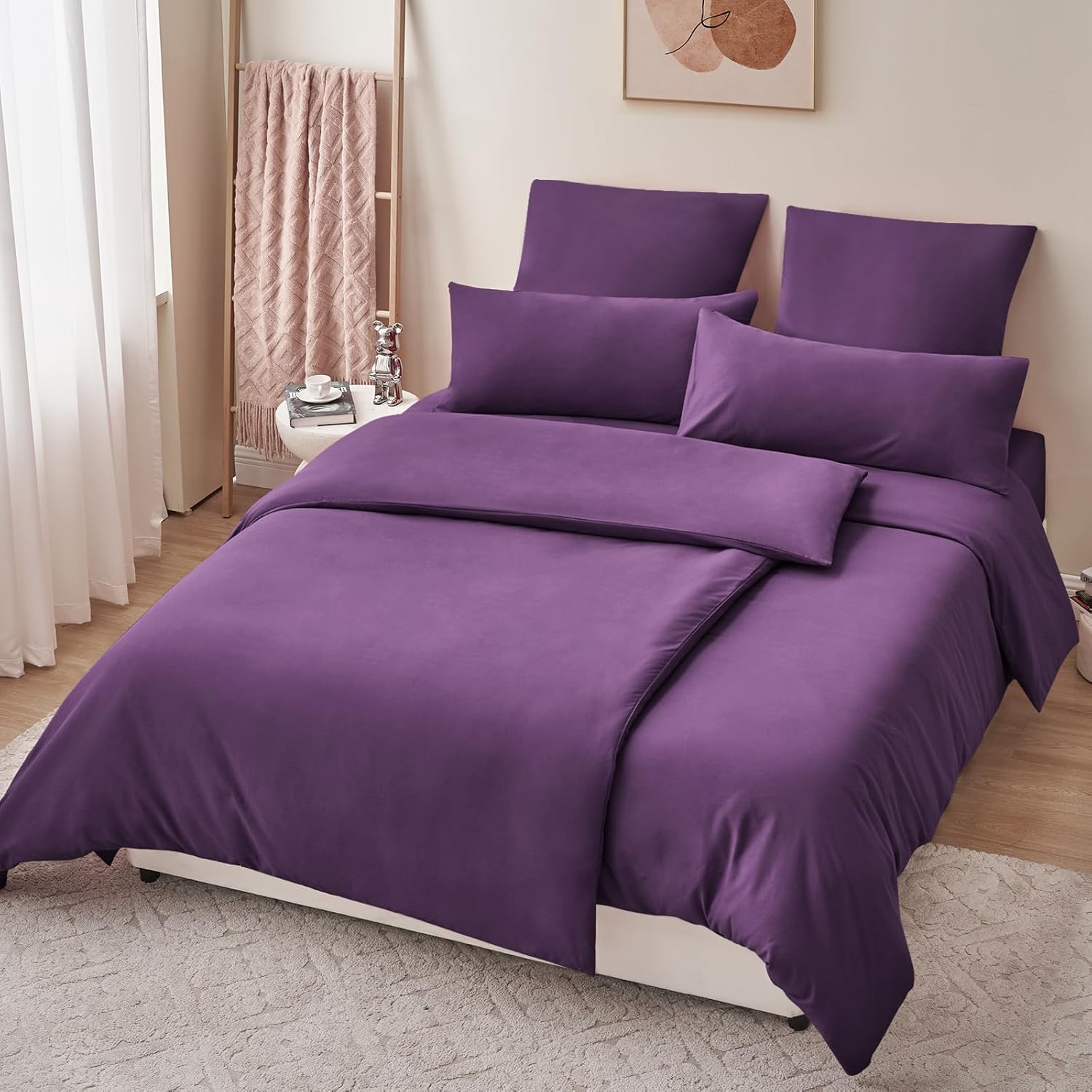 Комплект постельного белья из 4 предметов размером 135 x 200 см (в комплекте: 2 пододеяльника (135 x 200 см) + 2 наволочки (80 x 80 см)) с гладкой поверхностью и приятной текстурой изготовлен из микрофибры. Он очень приятен для кожи, так как он особенно мягкий и гипоаллергенный, что позволит вам наслаждаться спокойным ночным сном.