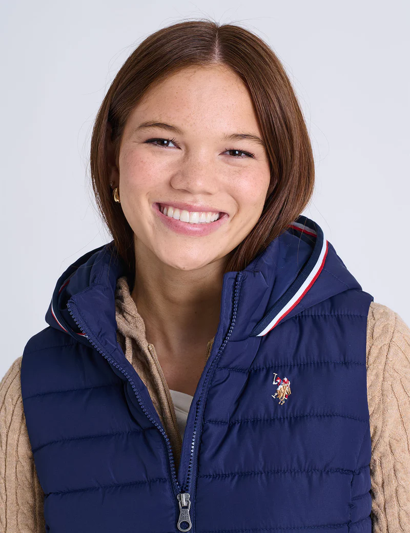 Стильный жилет с капюшоном US Polo Assn. Signature Stripe Vest с капюшоном – это идеальное сочетание тепла, комфорта и классического американского стиля. Этот стеганый жилет имеет элегантный силуэт и лёгкий утеплитель, идеально подходящий для переменчивой погоды или для ношения под более плотной верхней одеждой. Капюшон украшен фирменной красно-бело-синей полоской, что добавляет ему нотку исторического наследия. Дополненный вышитым логотипом с двумя всадниками на груди, этот жилет станет непринуждённым и элегантным дополнением любого повседневного или активного образа.