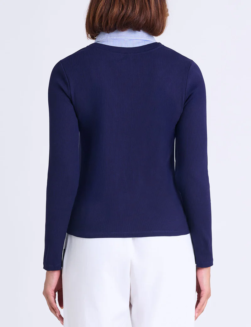 Многослойная рубашка с длинными рукавами из рубчатой ткани сочетает в себе изысканность и простоту в одном универсальном изделии. Это ваш кратчайший путь к непринужденному образу — достаточно элегантному для офиса и достаточно непринужденному для повседневной носки.