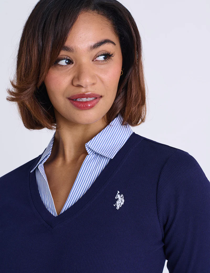 Создайте изысканный многослойный образ без громоздкости с помощью многослойной рубашки US Polo Assn. с длинным рукавом и ребристым плетением . Этот продуманный топ сочетает в себе комфорт мягкой трикотажной основы с изысканностью пришитого тканого воротника и выреза, создавая впечатление идеальной многослойной рубашки. Изготовленная из эластичной хлопковой ткани, она обеспечивает приталенный крой, идеально подходящий для работы, повседневных прогулок или выходных. Дополненная фирменным вышитым логотипом US Polo Assn. на груди, эта модель обеспечивает непринужденную элегантность и повседневный комфорт.