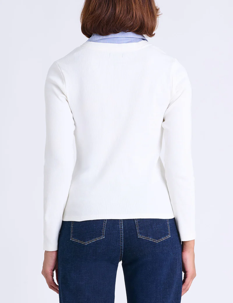 Многослойная рубашка с длинными рукавами из рубчатой ткани сочетает в себе изысканность и простоту в одном универсальном изделии. Это ваш кратчайший путь к непринужденному образу — достаточно элегантному для офиса и достаточно непринужденному для повседневной носки.