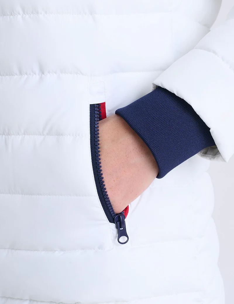 Стеганая горнолыжная куртка с капюшоном сочетает в себе практичность и элегантность как на склонах, так и на городских улицах . Её лаконичный дизайн, фирменные детали, тёплая, но лёгкая куртка делают её идеальным предметом верхней одежды для активных зимних дней.