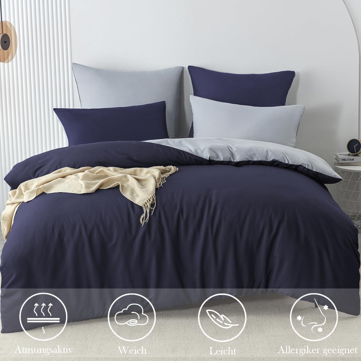 Молния: пододеяльник оснащен молнией, что упрощает его надевание и снятие. Наволочки также имеют молнию и идеально вписываются в общий дизайн. Чтобы одеяло оставалось на месте, по соответствующим углам предусмотрены завязки, которые позволяют прикрепить одеяло к пододеяльнику, и оно не будет сбиваться.
