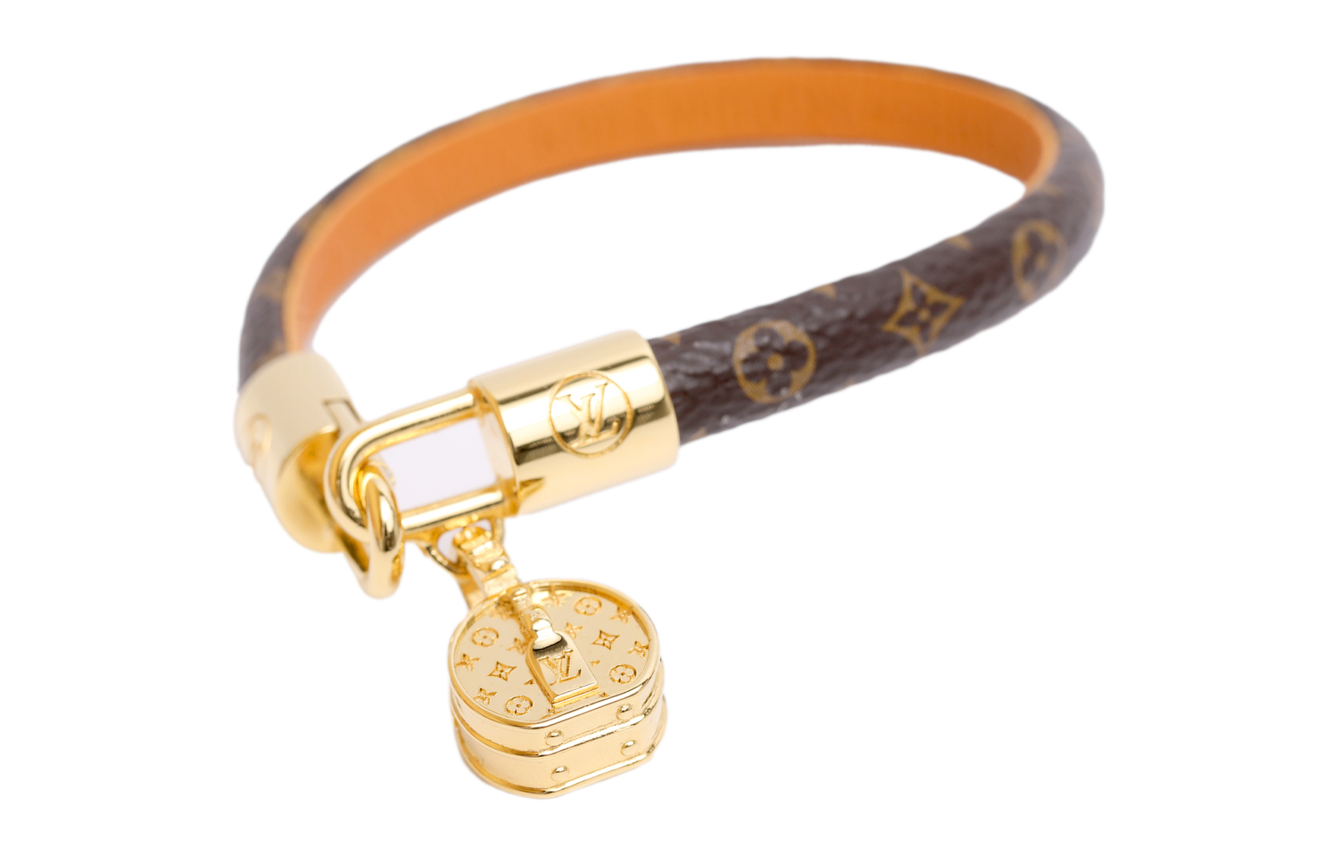 Как следует из названия, этот браслет LV Tribute отдаёт дань уважения наследию Louis Vuitton. Вдохновлённая архивами бренда, эта подвеска в форме шляпной коробки прекрасно сочетается с браслетом из канвы Monogram с подкладкой из телячьей кожи, завершая образ. Гравированный логотип LV на застёжке придаёт этому коллекционному изделию элегантный штрих.