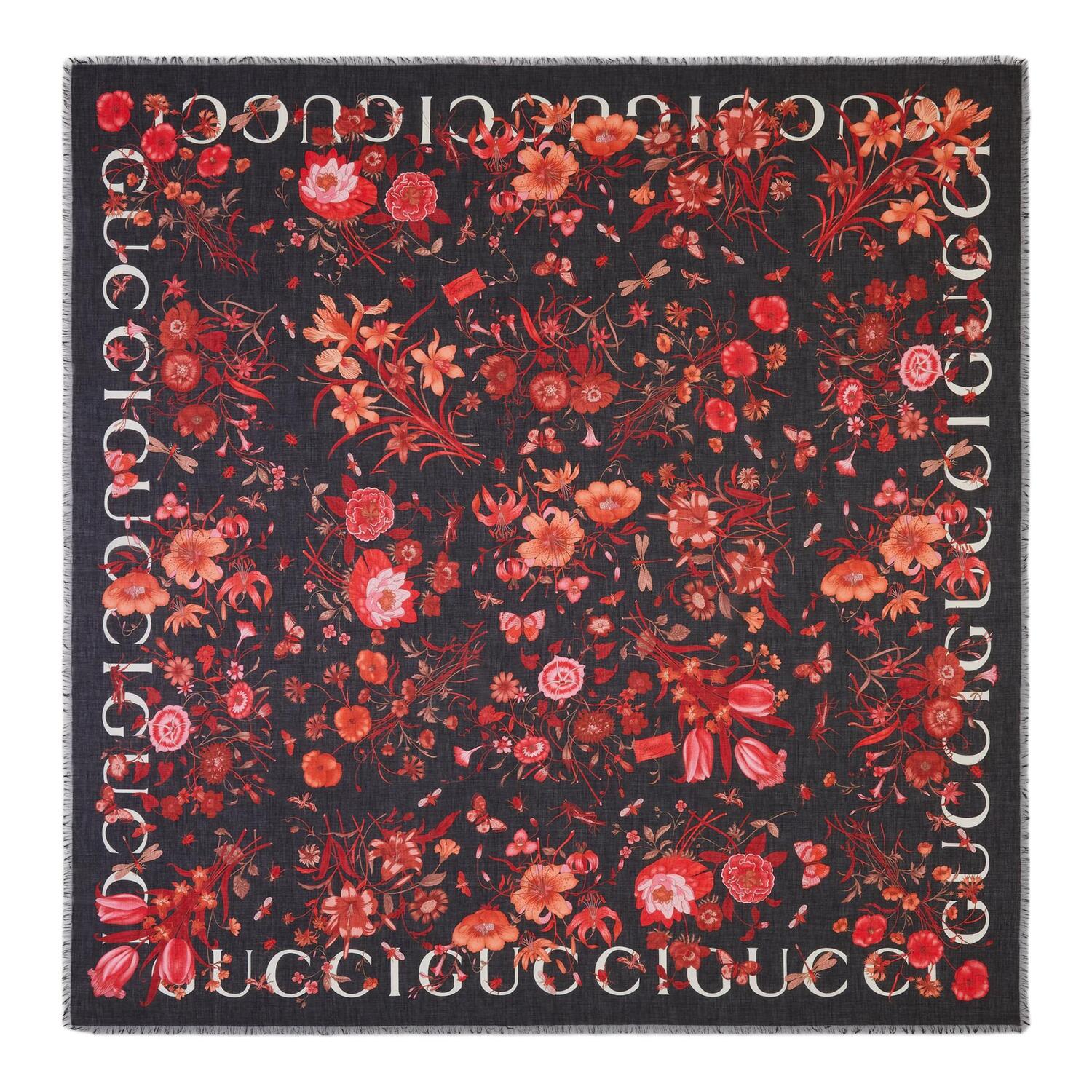 Шарф с цветочным принтом GUCCI, черный