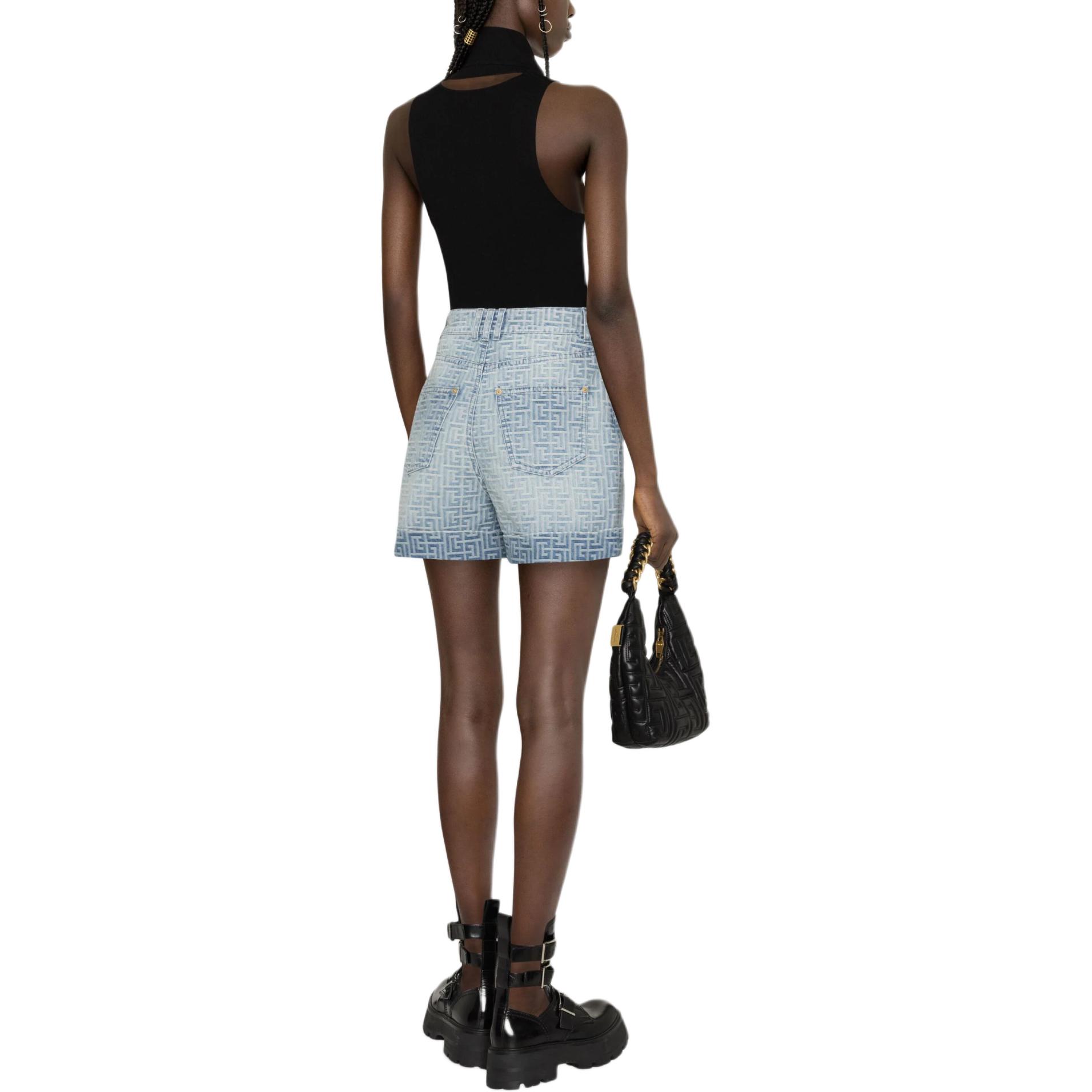 Монограммированные шорты с высокой талией BALMAIN, голубой