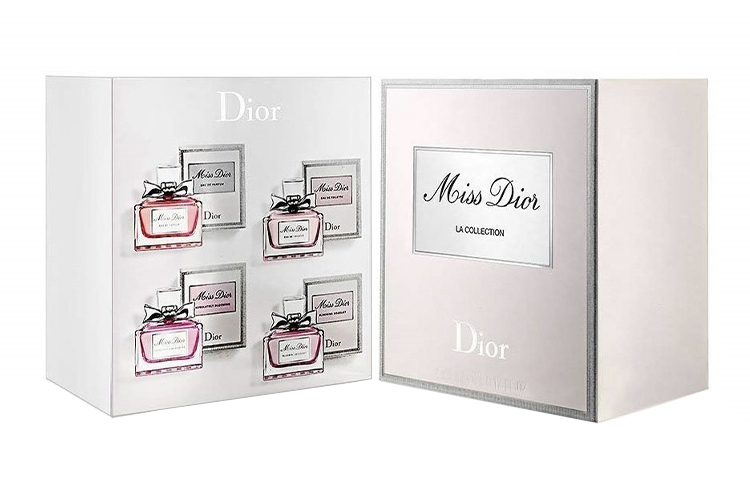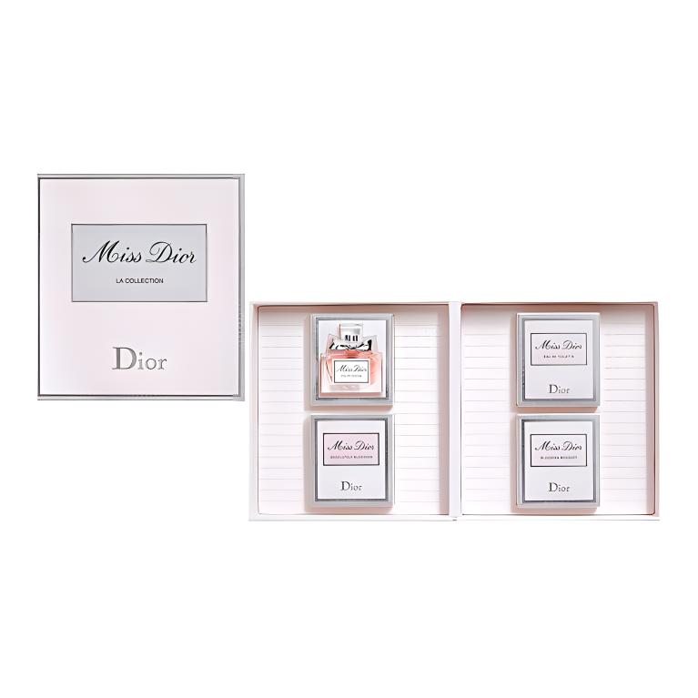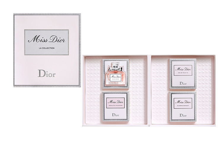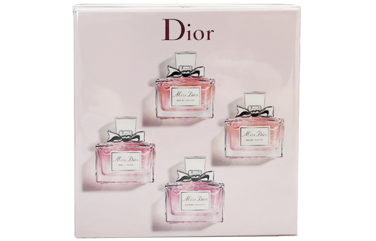 В набор входят (5 мл*4): Miss Dior EDP, Miss Dior EDT, Blooming Bouquet EDT, Absolutely Blooming EDP и Rose N' Roses EDT (5 мл*4).