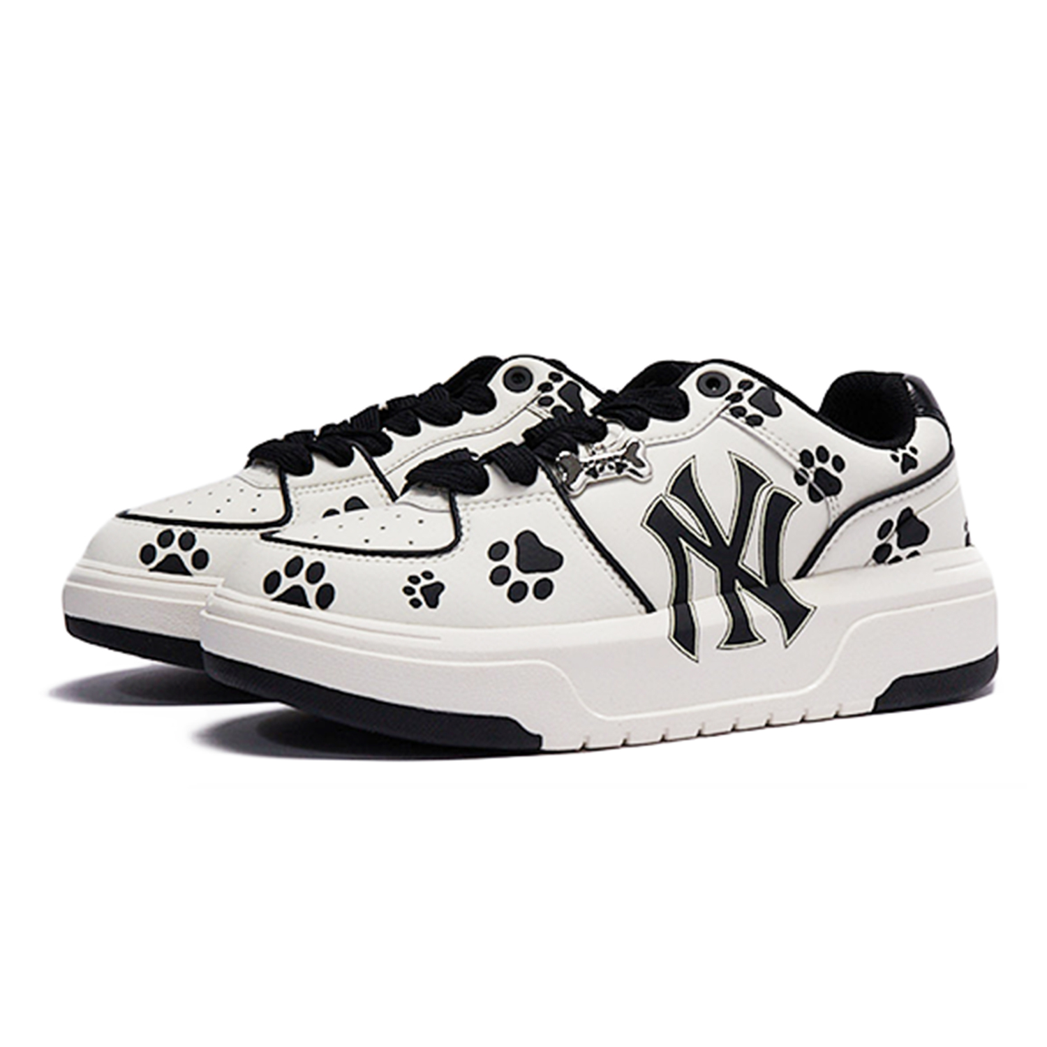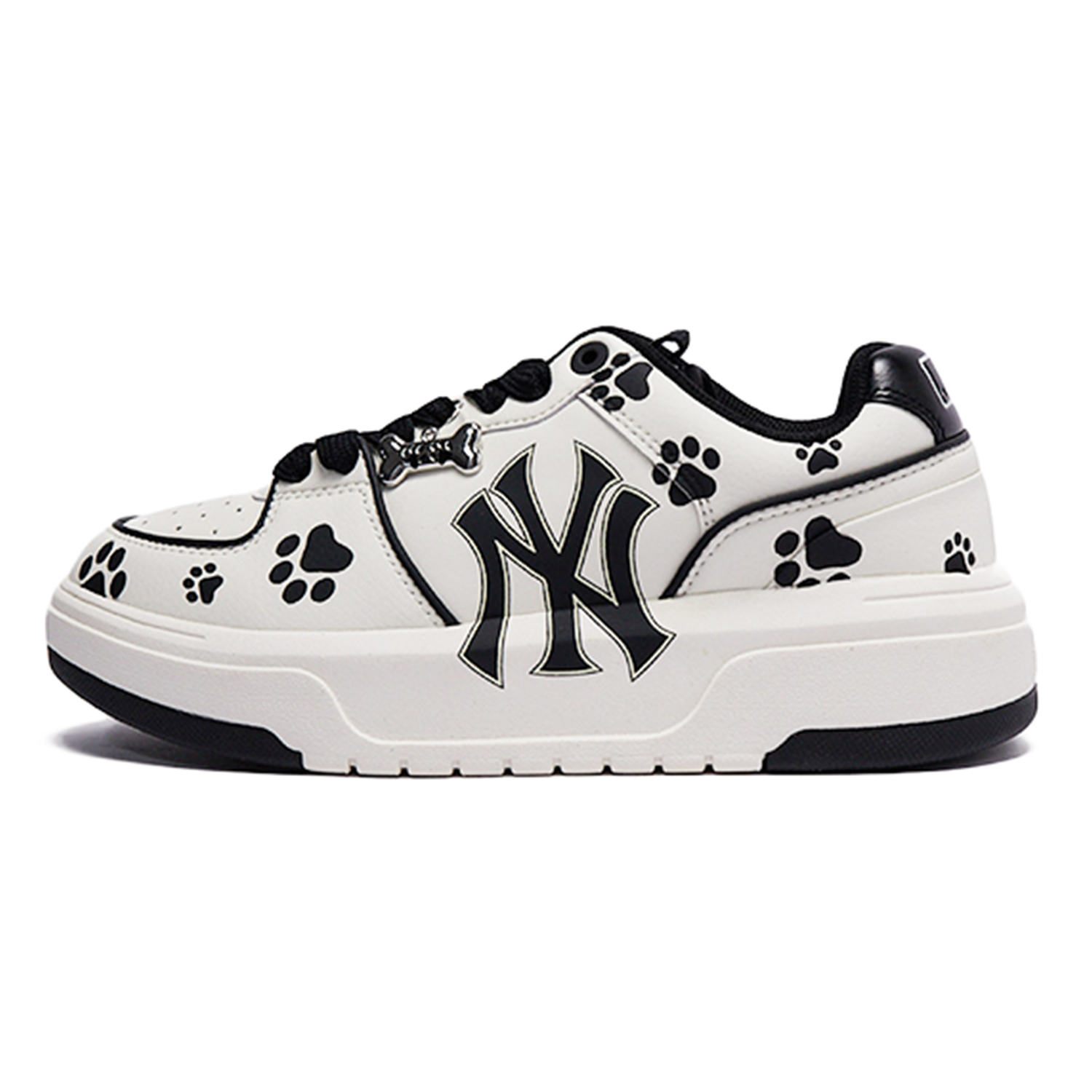 Эти кастомные кроссовки основаны на оригинальной модели MLB Chunky Liner PU - невероятно очаровательных, струящихся, прочных и увеличивающих рост низких белых кроссовок унисекс. Дизайн кроссовок вдохновлён изображением щенячьей лапки, а классическая чёрно-белая цветовая гамма создаёт американский стиль. Принт щенячьей лапки на кроссовке выглядит мило и трогательно, а подвеска в виде косточки - идеальный завершающий штрих.