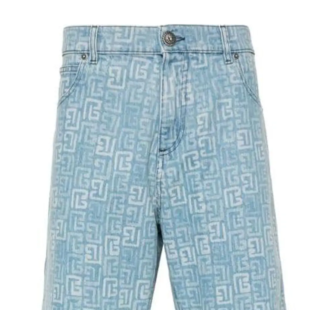 Джинсы с прямыми штанинами и принтом 4G BALMAIN, голубой