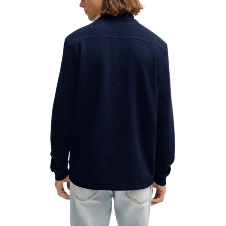 Длинный рукав вязаное поло HUGO BOSS, синий