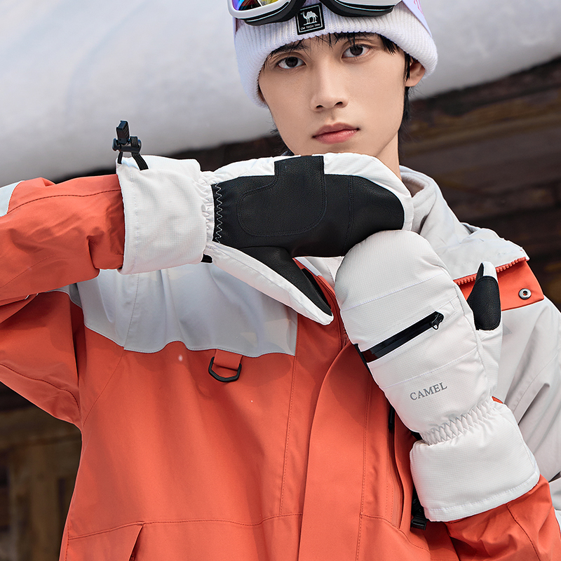 Перчатки для лыж Windproof и Waterproof, утепленные варежки Unisex CAMEL, черный