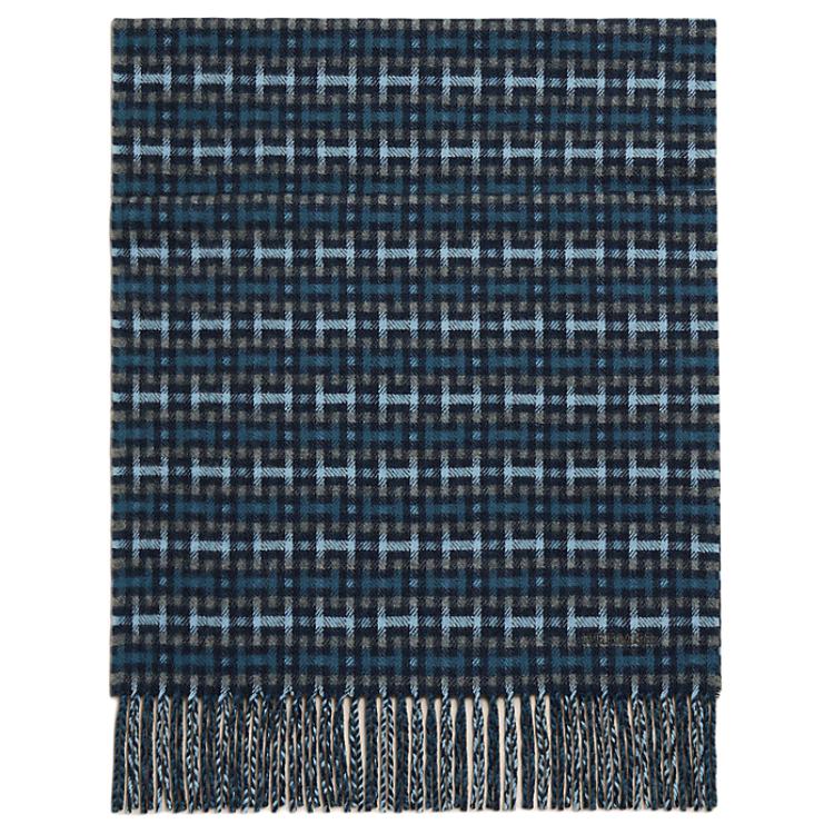 Шерстяной шарф мужской Marble Blue HERMES, синий