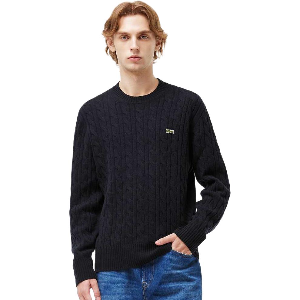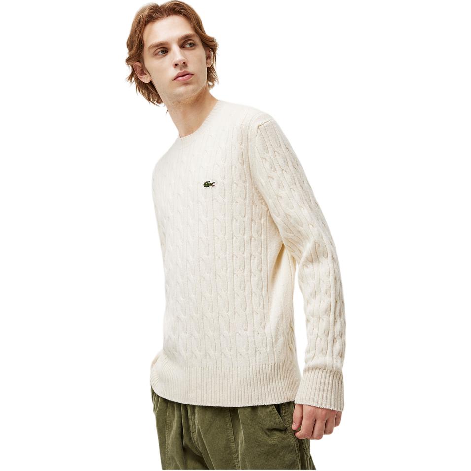 Вязаный свитер кабельной вязкой LACOSTE, белый