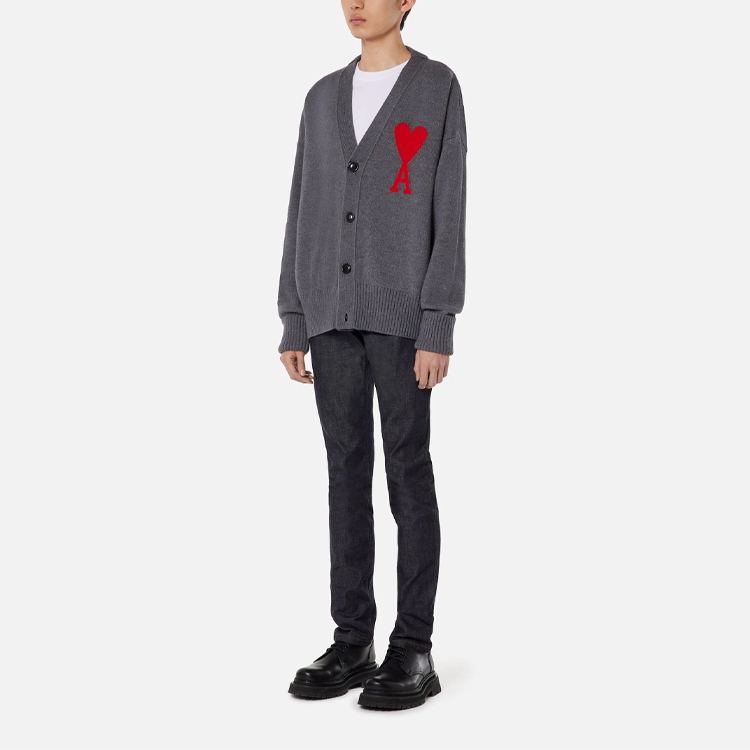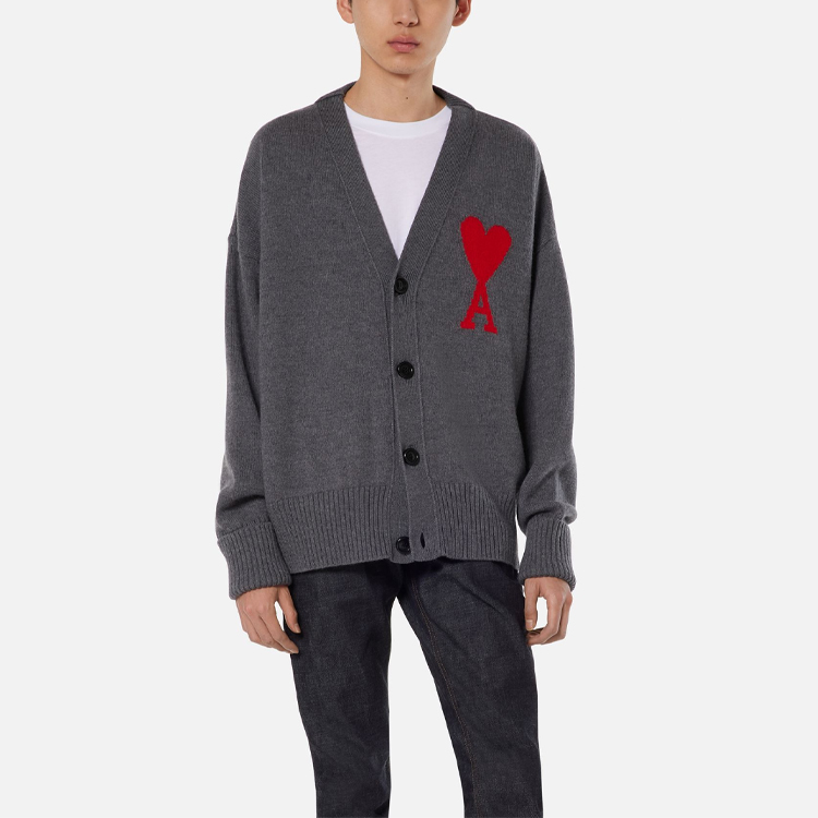 Кардиган Ami Paris с логотипом и пуговицами AMIPARIS, серый