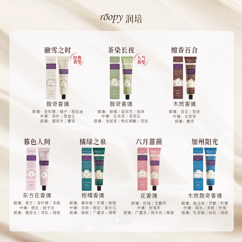 Runpei поддерживает французскую эстетику жизни и элегантный, беззаботный образ жизни, сочетая французское парфюмерное искусство с тщательно отобранными натуральными растительными экстрактами, создавая пленительный и элегантный бренд ароматов для жизни. Вдохновленная масляными красками на знаменитых французских картинах, вся линейка продукции выполнена в ретро-цветовой гамме Morandi и дополнена романтическими парфюмерными нотками, даря пользователям изысканный образ жизни. Легкая кремовая текстура увлажняет, не оставляя жирного блеска, легко распределяется и быстро впитывается. Алюминиевые баночки экологичны и легко впитываются, а герметичная конструкция гарантирует свежесть ингредиентов. Отборные французские ингредиенты обильно увлажняют ваши руки; стойкий аромат переносит вас в романтический отпуск. Runpei, пусть вас окружает аромат.