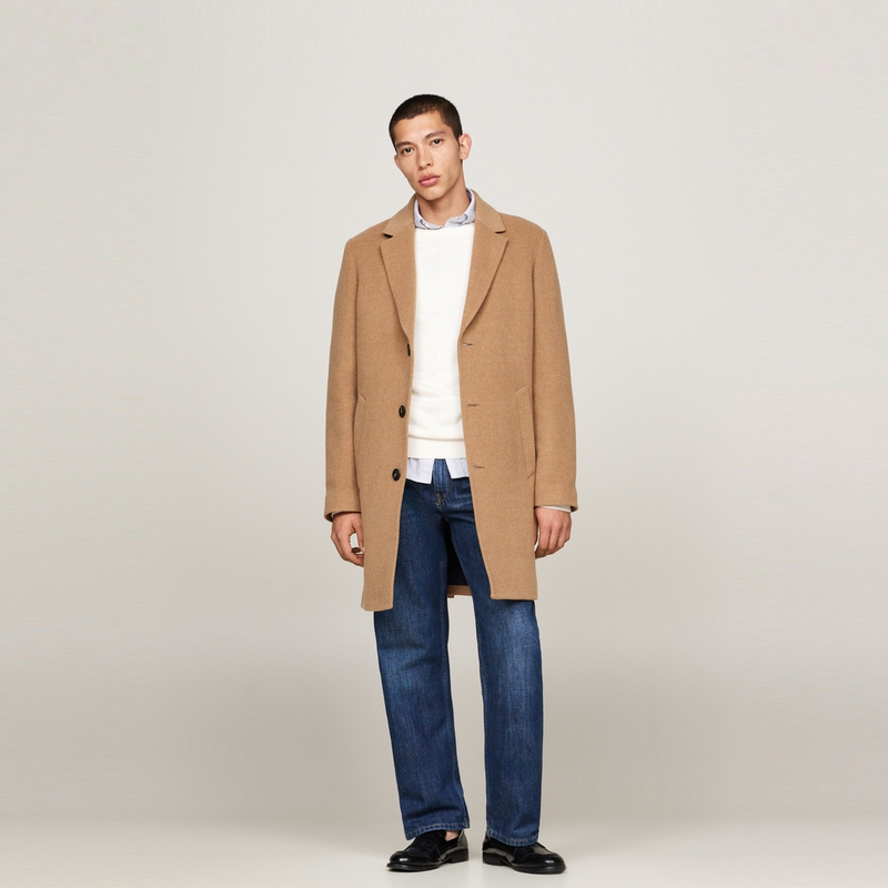 Однобортное длинное пальто Tommy Hilfiger, хаки