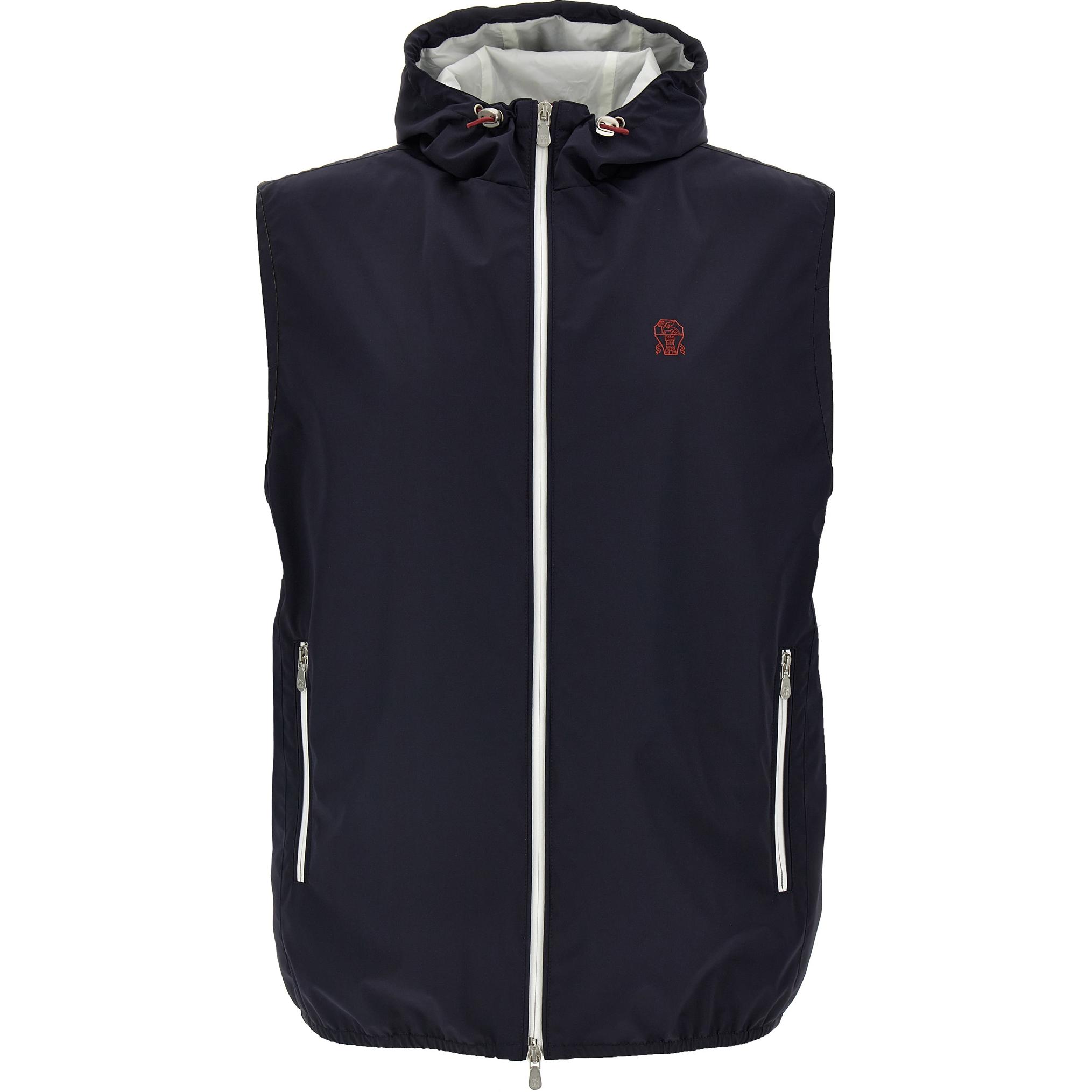 Вышитый логотипом жилет на молнии Brunello Cucinelli, синий