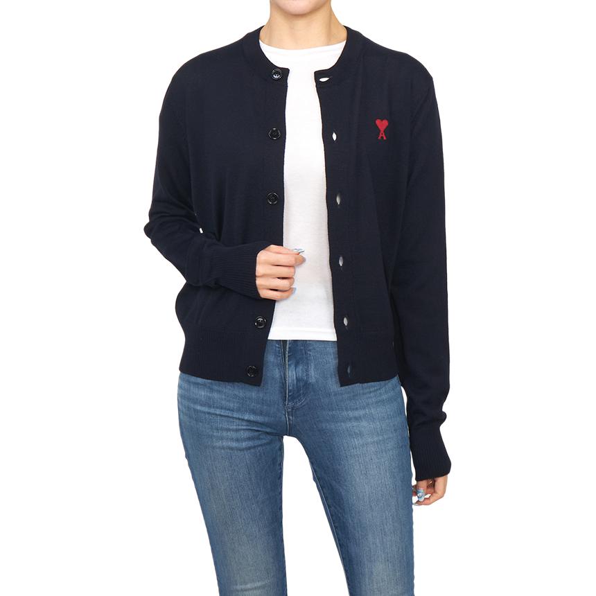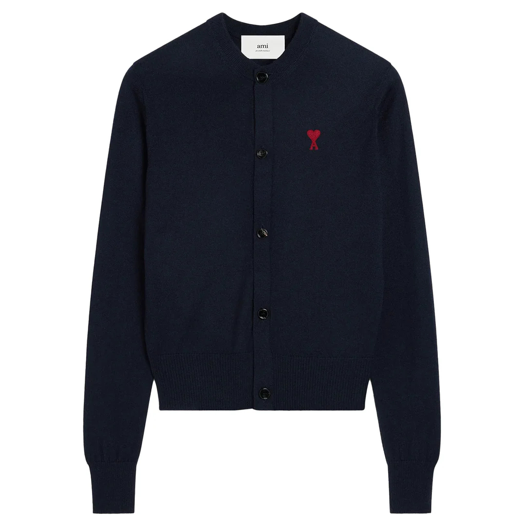 Кардиган с вышитым логотипом ami AMIPARIS, темно-синий
