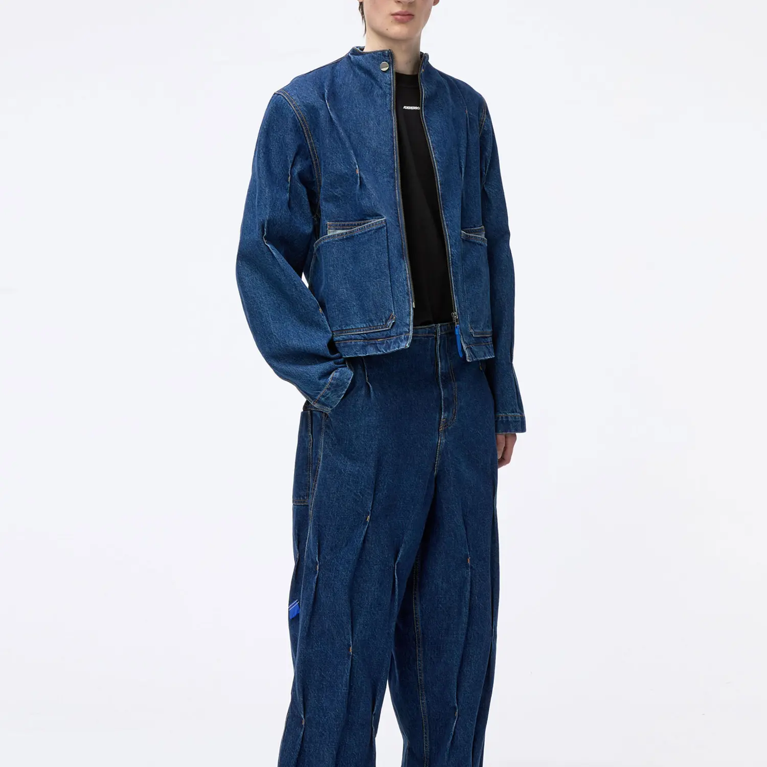 Джинсовая куртка с молнией спереди и складками ADER ERROR, синий