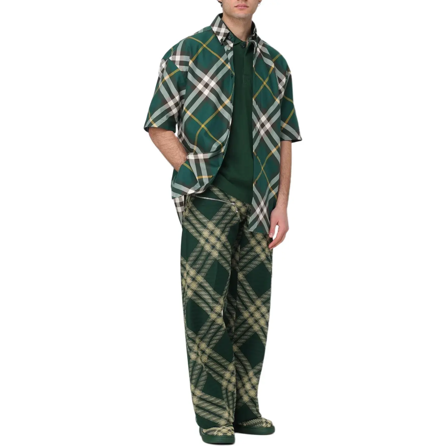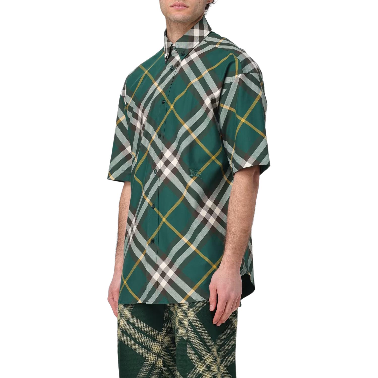 Рубашка в клетку с вышитым логотипом Burberry, зеленый