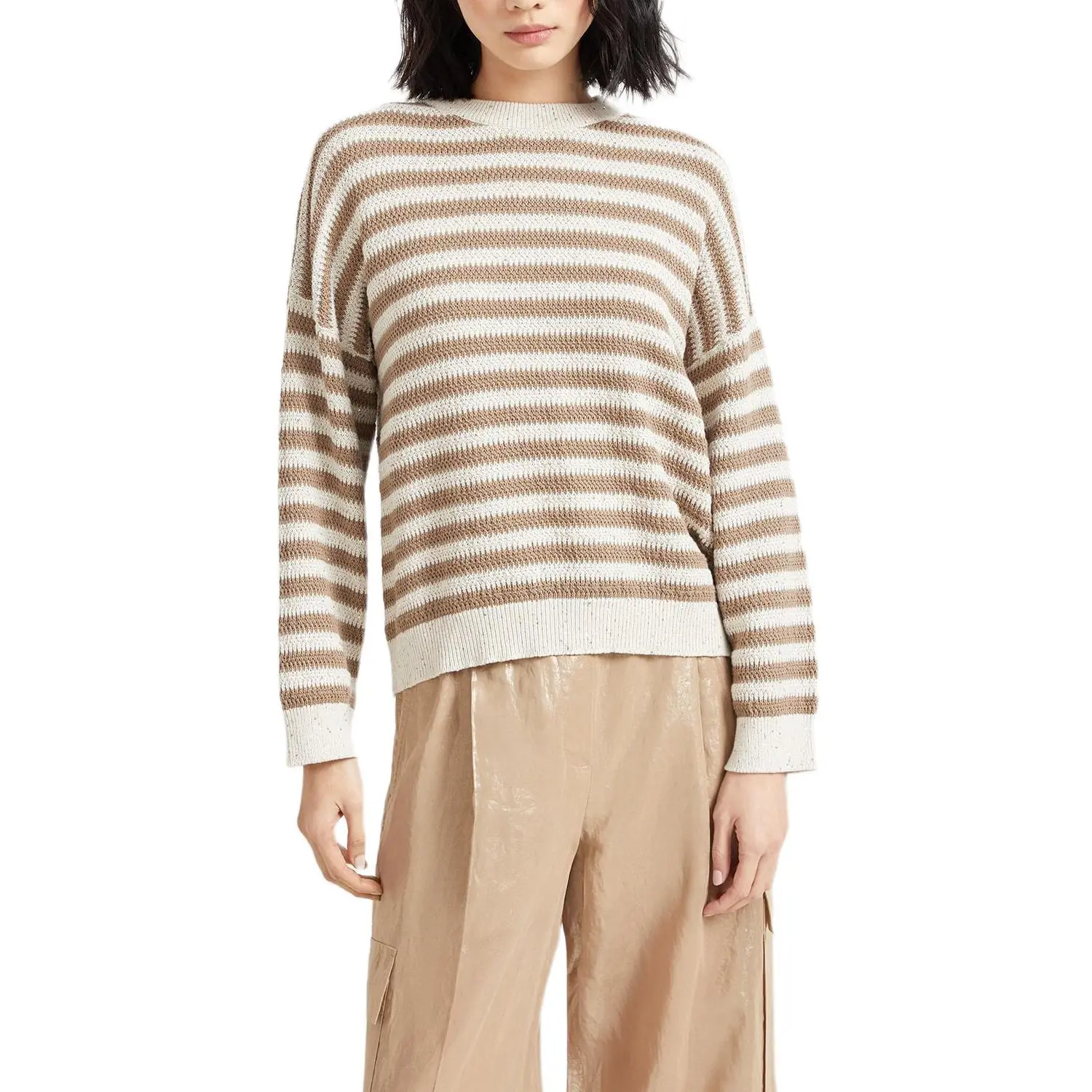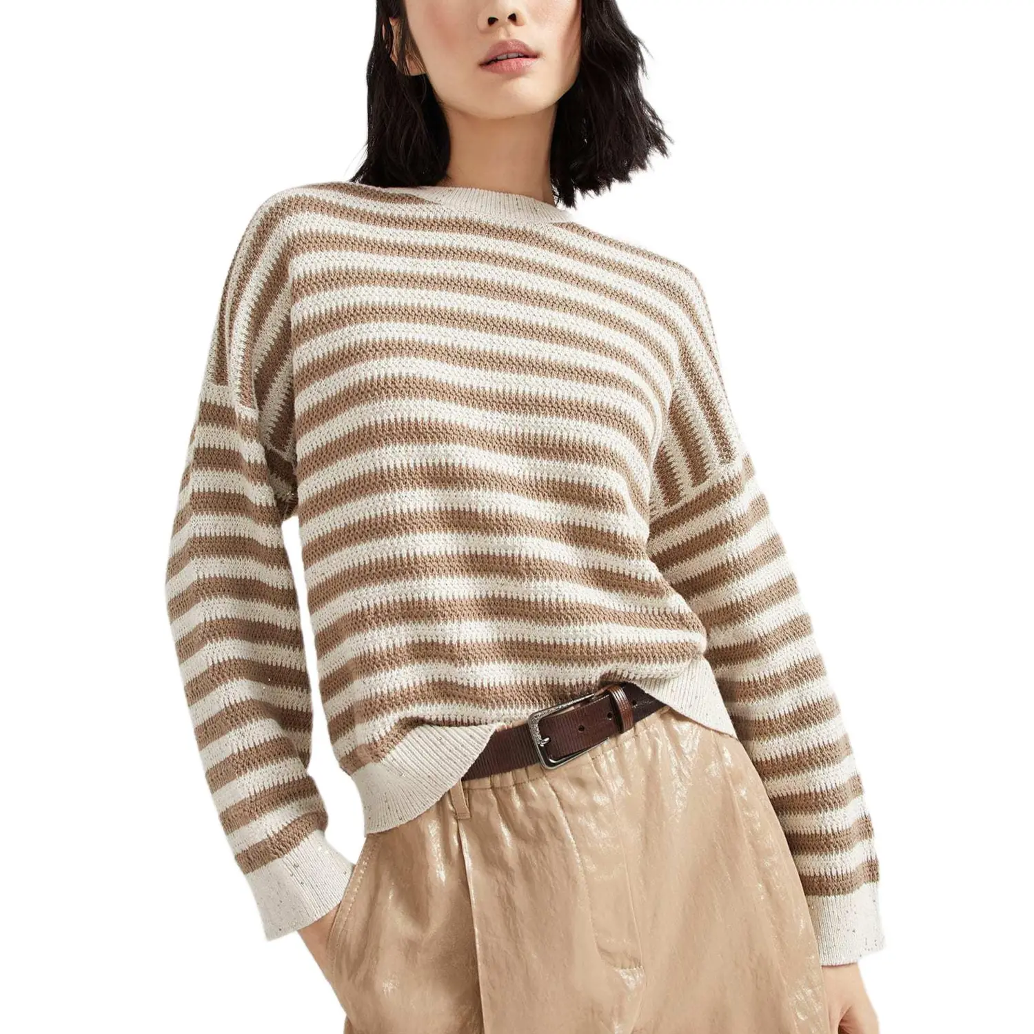 Полосатый свитер Brunello Cucinelli, серовато-бежевый