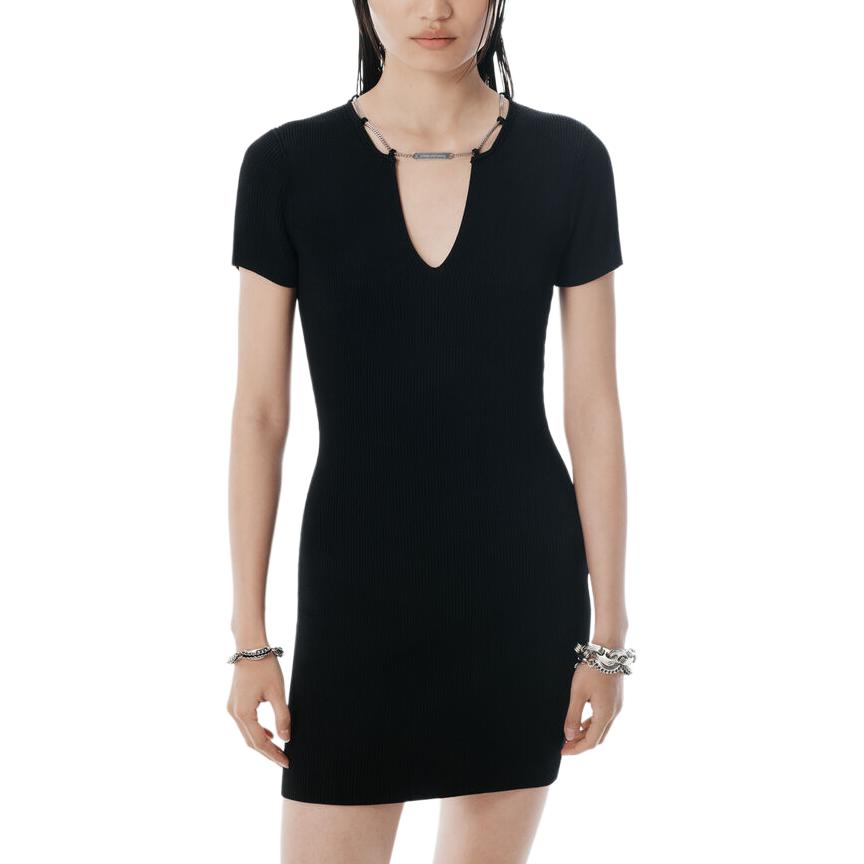 Мини-платье-футляр с логотипом и шильдиком Alexander Wang, черный 46 531₽