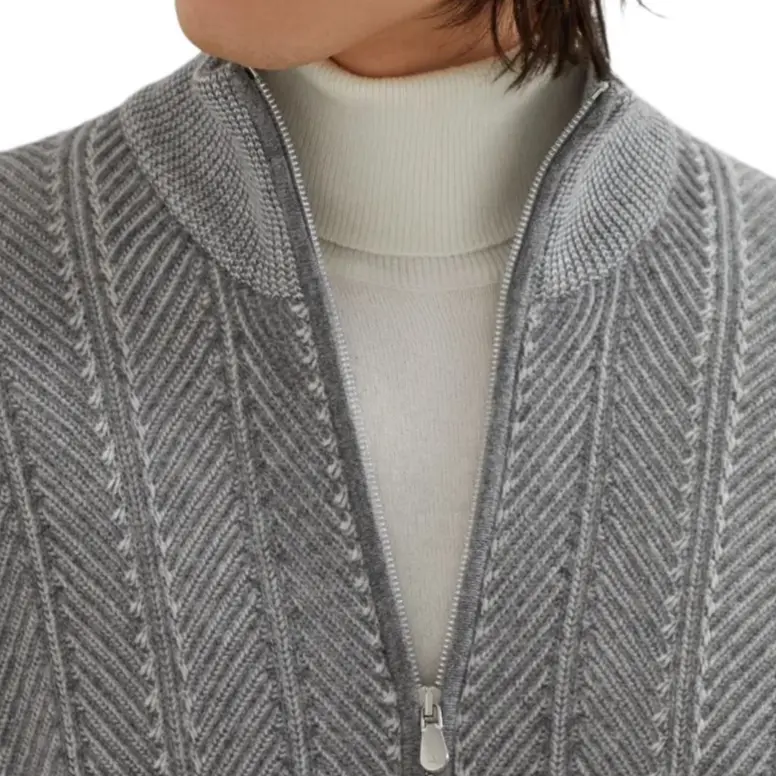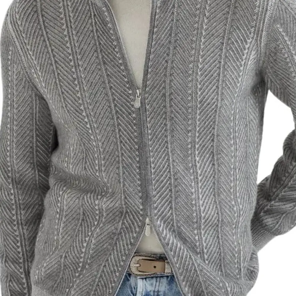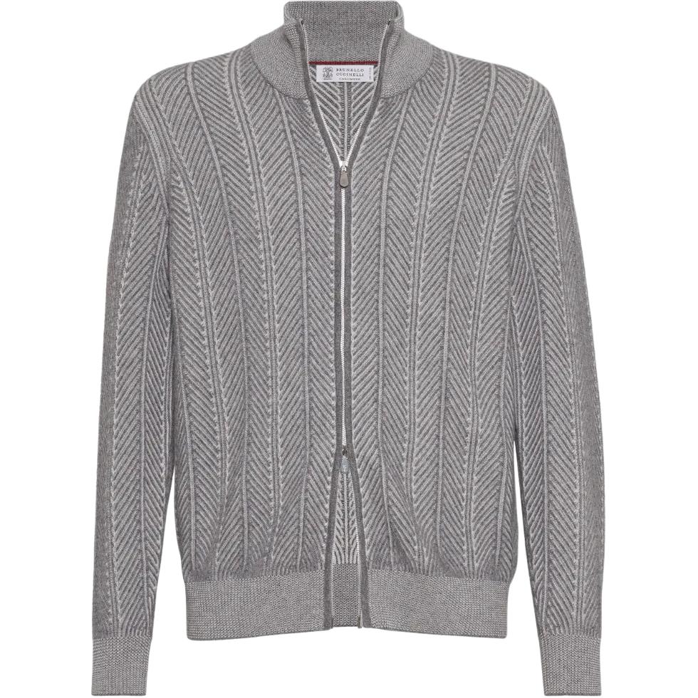 Кардиган с длинным рукавом на молнии Brunello Cucinelli, серый