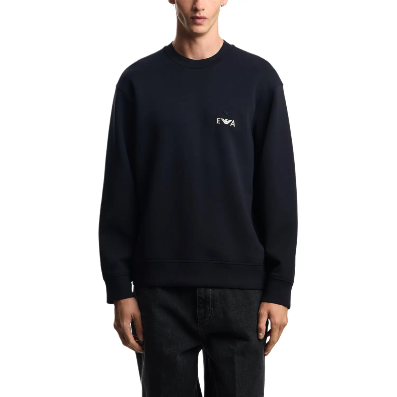 Свитшот с вышитым логотипом EMPORIO ARMANI, темно-синий