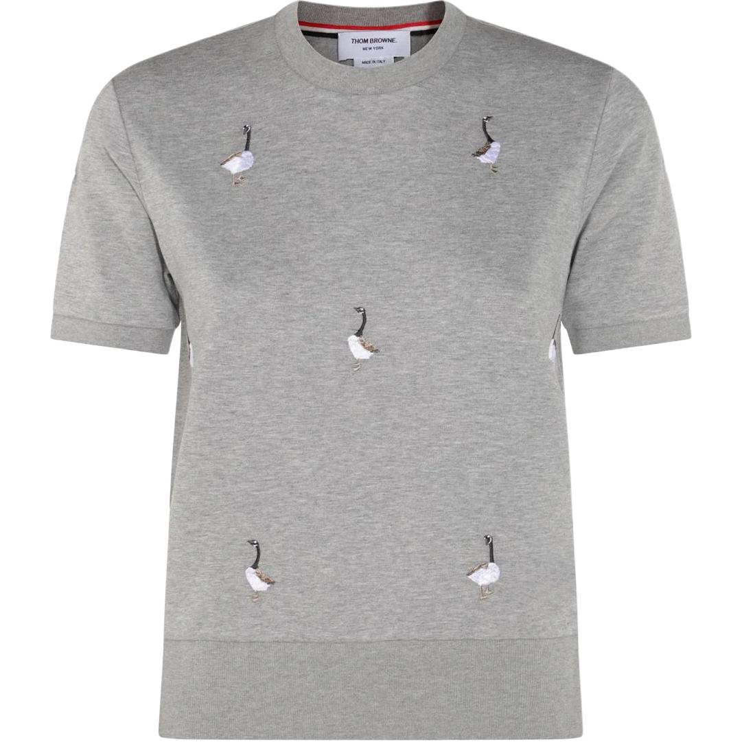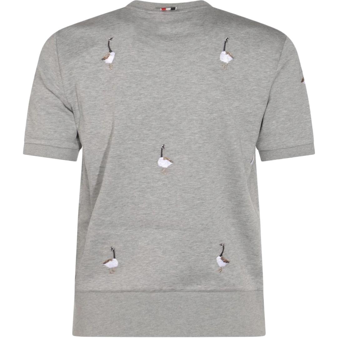 Футболка с вышивкой гусей и логотипом THOM BROWNE, серый
