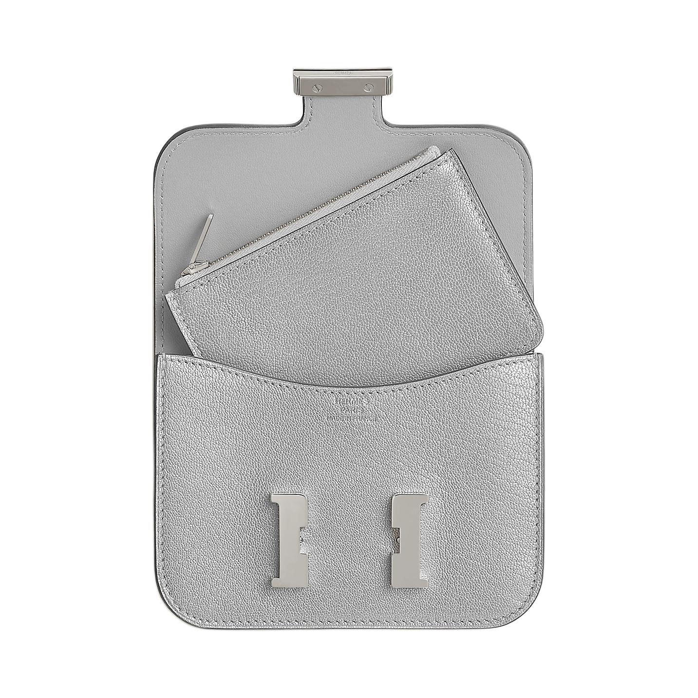 Constance Slim Chamkilight Кожаный Кошелек Женский 05 Argente Silver HERMES, K Stamp