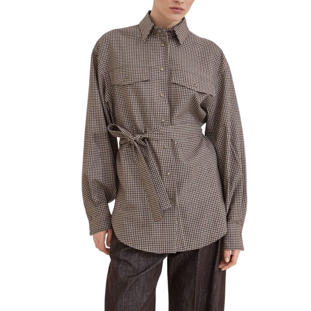 Рубашка с длинным рукавом в клетку Brunello Cucinelli, коричневый