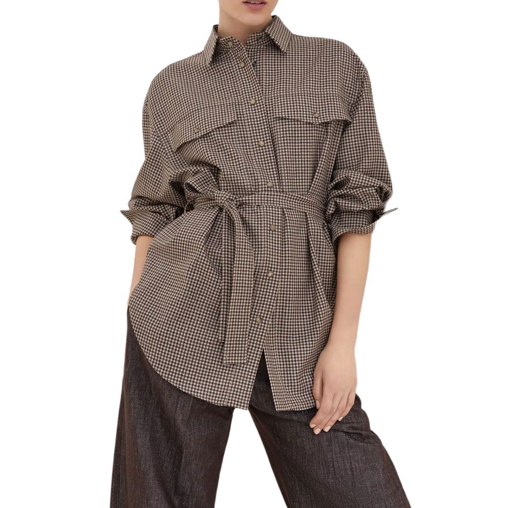 Рубашка с длинным рукавом в клетку Brunello Cucinelli, коричневый 227 635₽