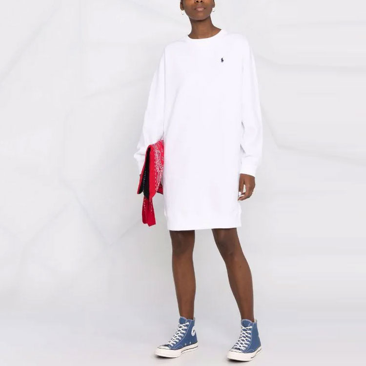 Белое платье с длинными рукавами SS22 Polo Ralph Lauren, белый
