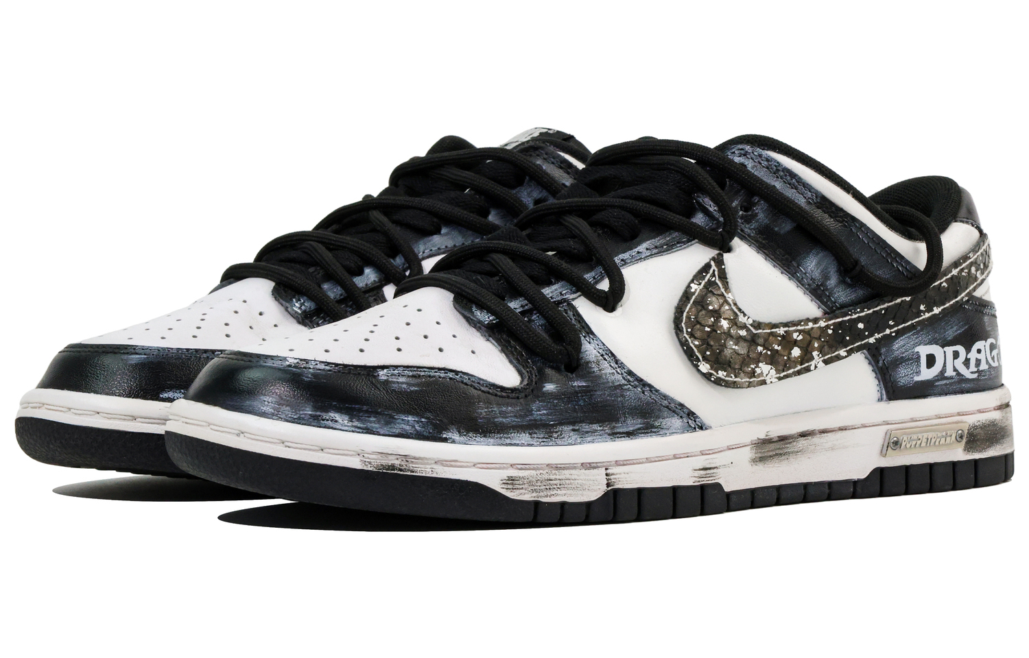 Эти кастомные кроссовки созданы на основе оригинальной модели Nike Dunk LOW RETRO «Panda White Black» - удобных, прочных, нескользящих и низких кроссовок унисекс с тонкой подошвой в бело-черной цветовой гамме. Весь корпус кроссовок перекрашен эксклюзивной краской. Кроме того, добавление граффити в виде фирменных значков дизайна идеально подчеркивает их модные элементы. Эксклюзивная новая расцветка с матовой текстурой придает кроссовкам неповторимый шарм.