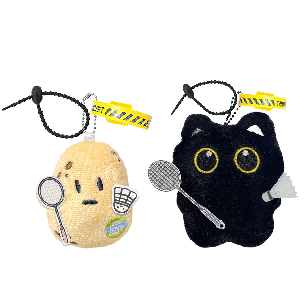 Название продукта: Розовая ракетка и смайлик для бадминтона, картофель + бадминтон, черный кот и черный шнур, желтый ремешок, 2 шт.